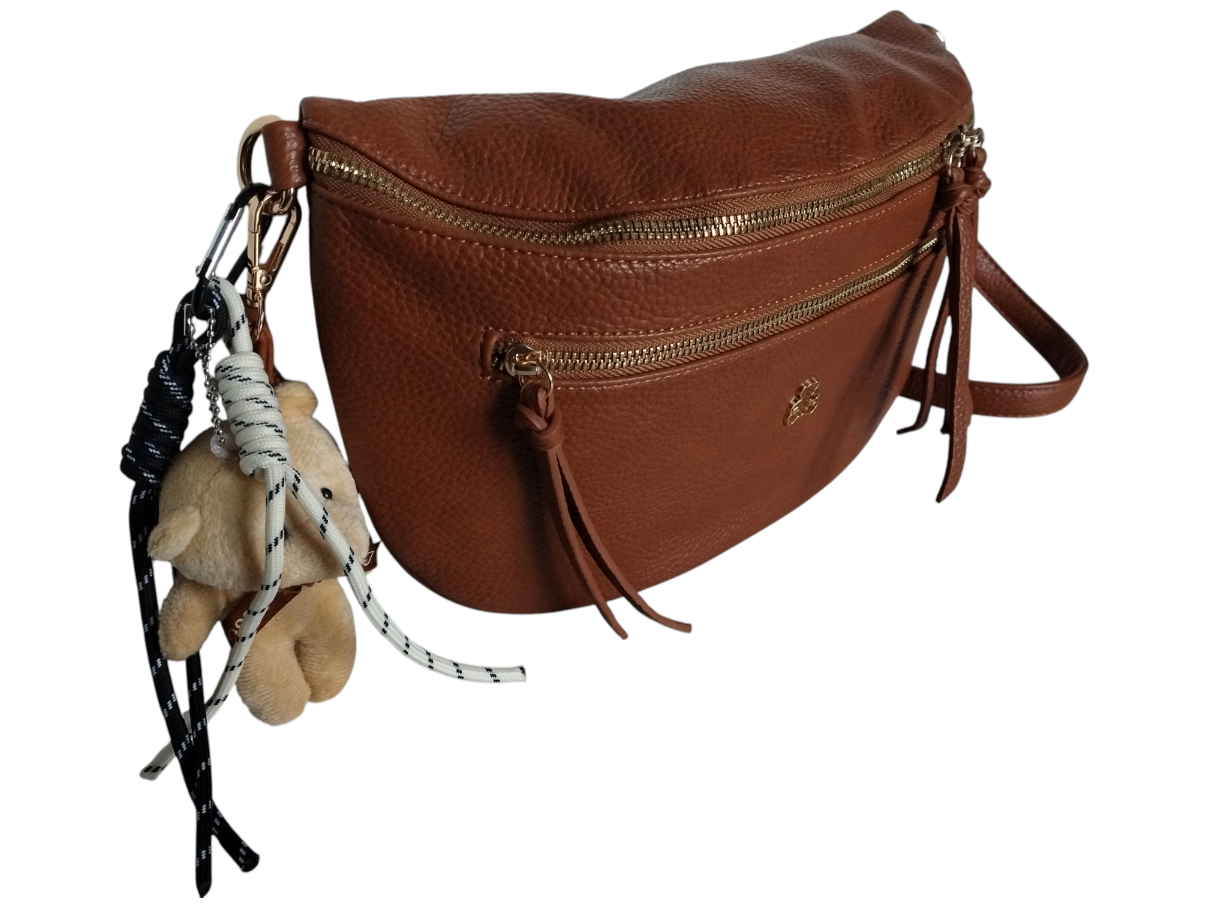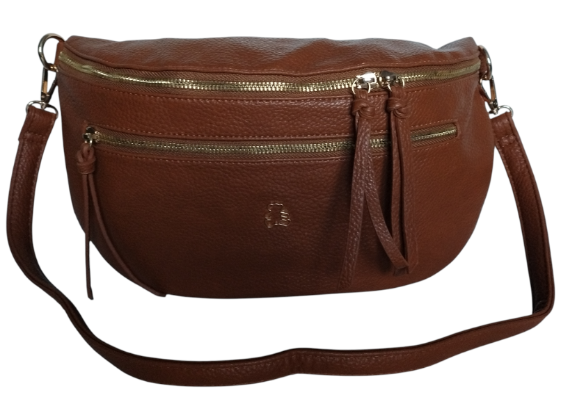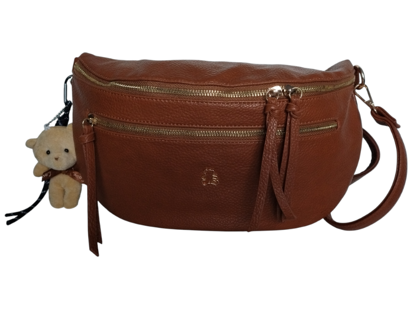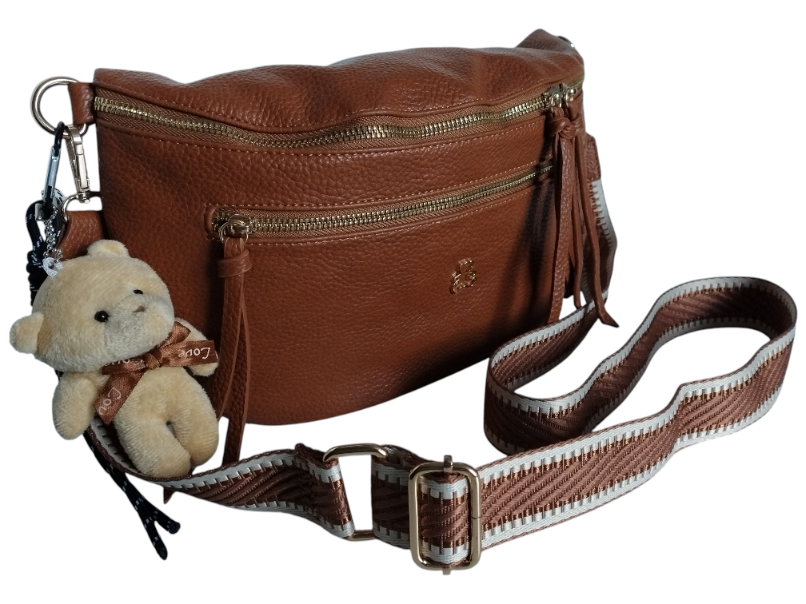 Nerka Damska Na Ramię Z Zawieszką Miejska Torebka Damska 2 Paski Brązowy