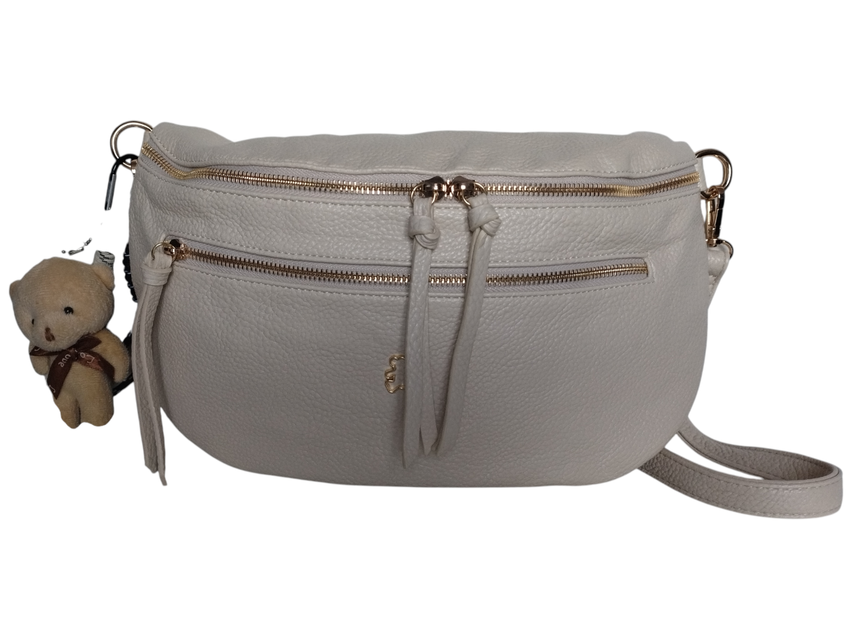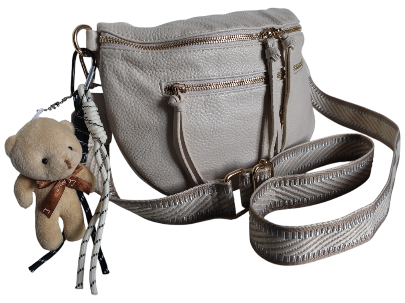 Nerka Damska na Ramię z Zawieszką Miś Miejska Torebka Damska 2 Paski Beżowy