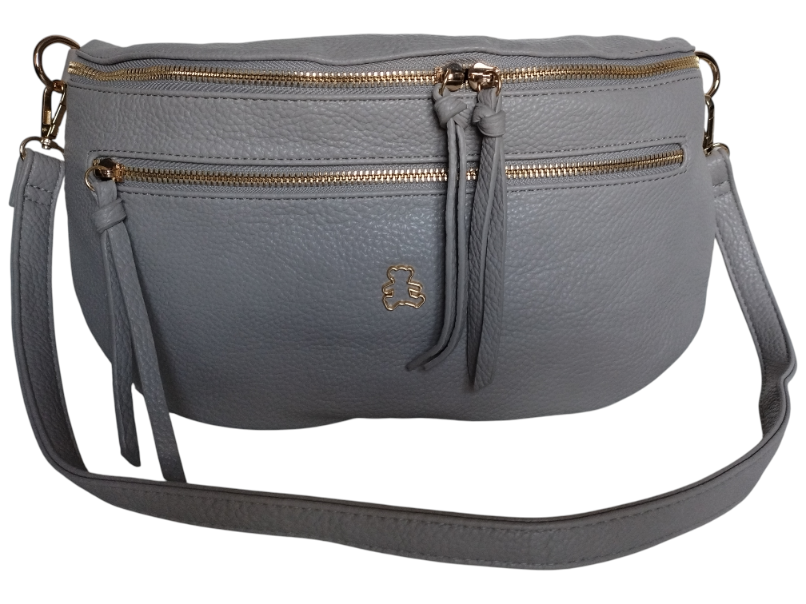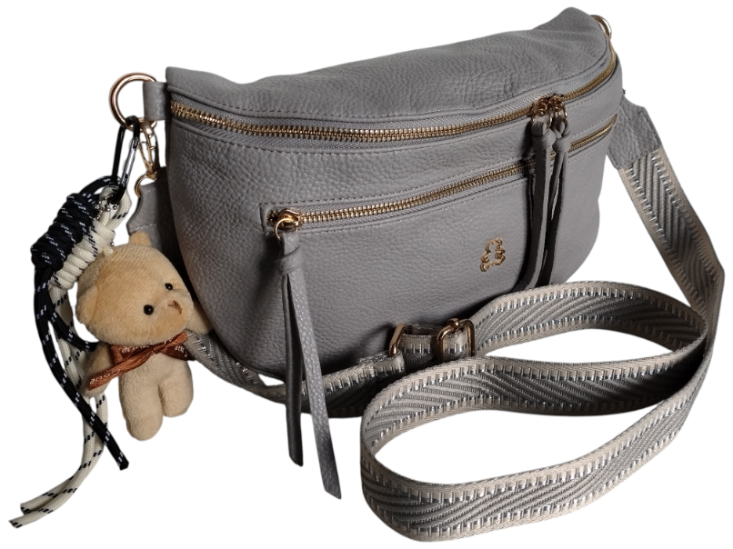 Nerka Damska Na Ramię Z Zawieszką Miś Miejska Torebka Damska 2 Paski Szary