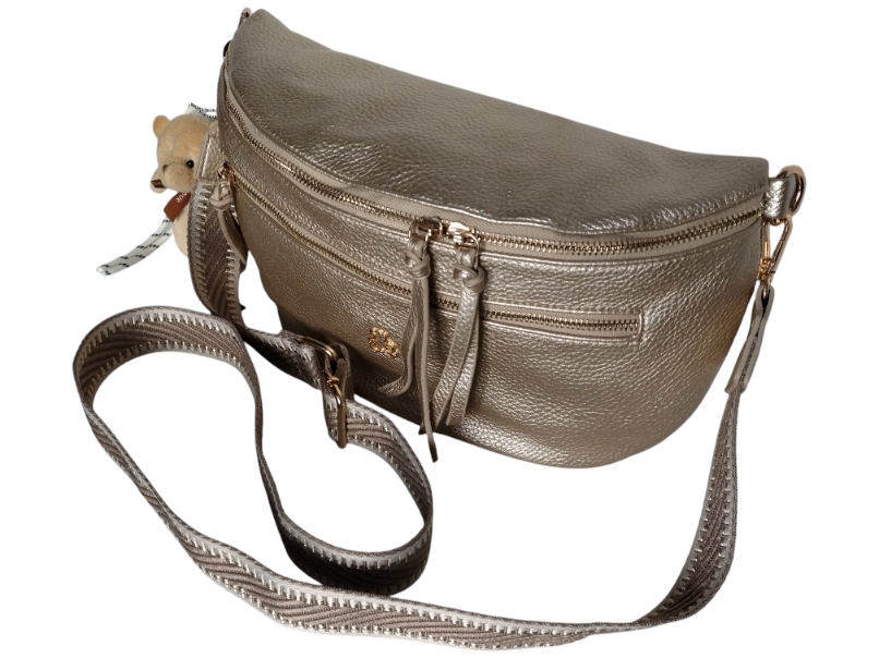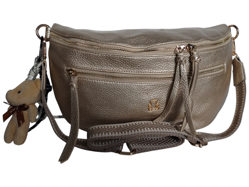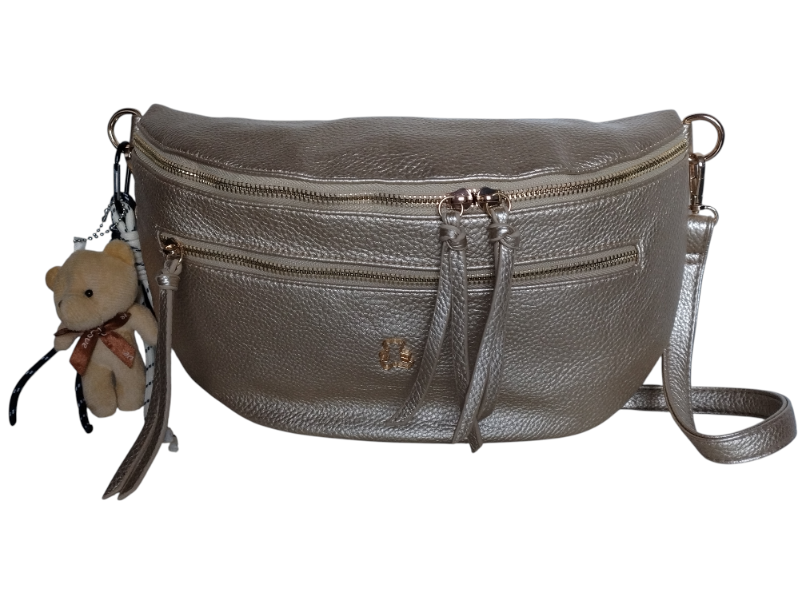 Nerka Damska Na Ramię Z Zawieszką Miś Miejska Torebka Damska 2 Paski Złoty