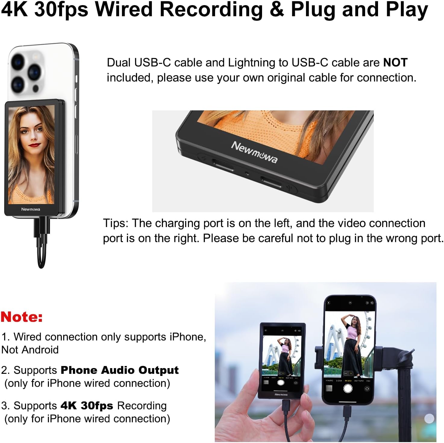 Newmowa Czarny Magnetyczny ekran do zdjęć Vlog Selfie Monitor LiveStream
