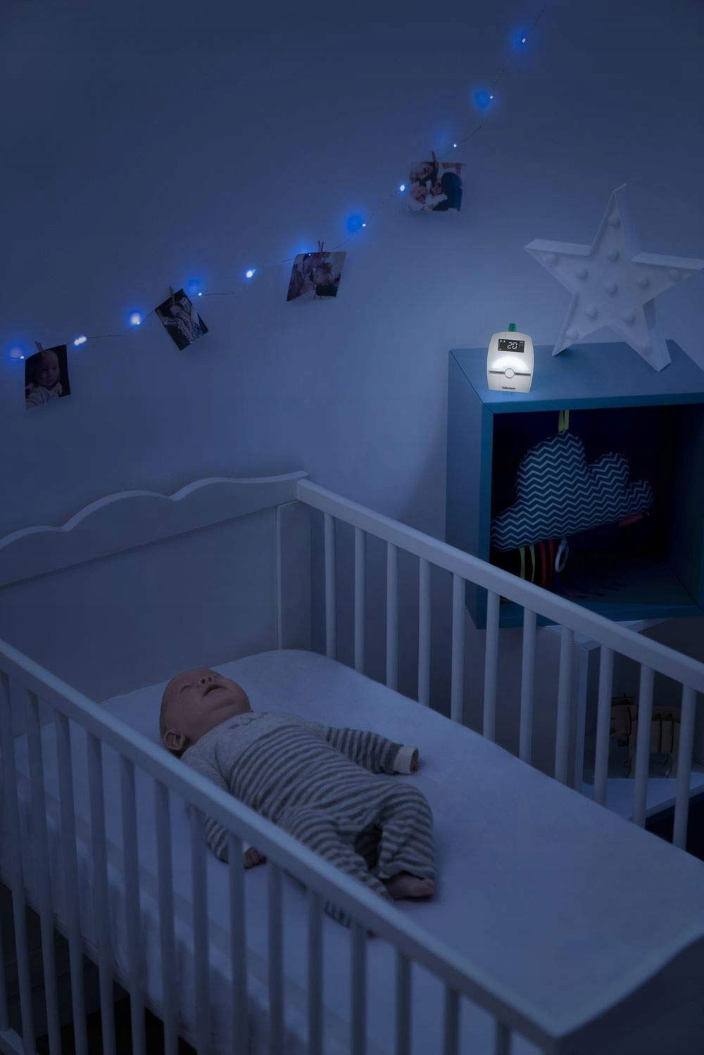 Ta niania ma lampkę nocną i odtwarza kołysanki. Tworzą one uspokajające środowisko. Aby Twoje dziecko spało spokojnie, temperatura powinna wynosić od 18°C do 20°C. Premium Care posiada wskaźnik temperatury, który pomaga utrzymać idealną temperaturę w sypialni Twojego dziecka.