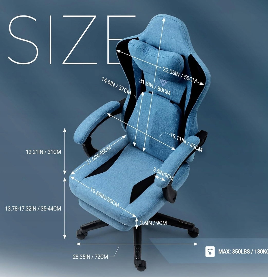 - 【Oddychająca tkanina】Ten fotel do gier z tkaniny zapewnia ekstremalny komfort i oddychalność. Biorąc pod uwagę siedzących użytkowników, gdy w pomieszczeniu jest ciepło, siedzenie przez długi czas może łatwo powodować uczucie duszności i pocenia się. Dlatego fotel został zaprojektowany specjalnie w tym celu, oddychająca tkanina umożliwia cyrkulację powietrza, co skutecznie zapobiega gromadzeniu się ciepła i wilgoci, powodując dyskomfort i utrzymuje uczucie świeżości.