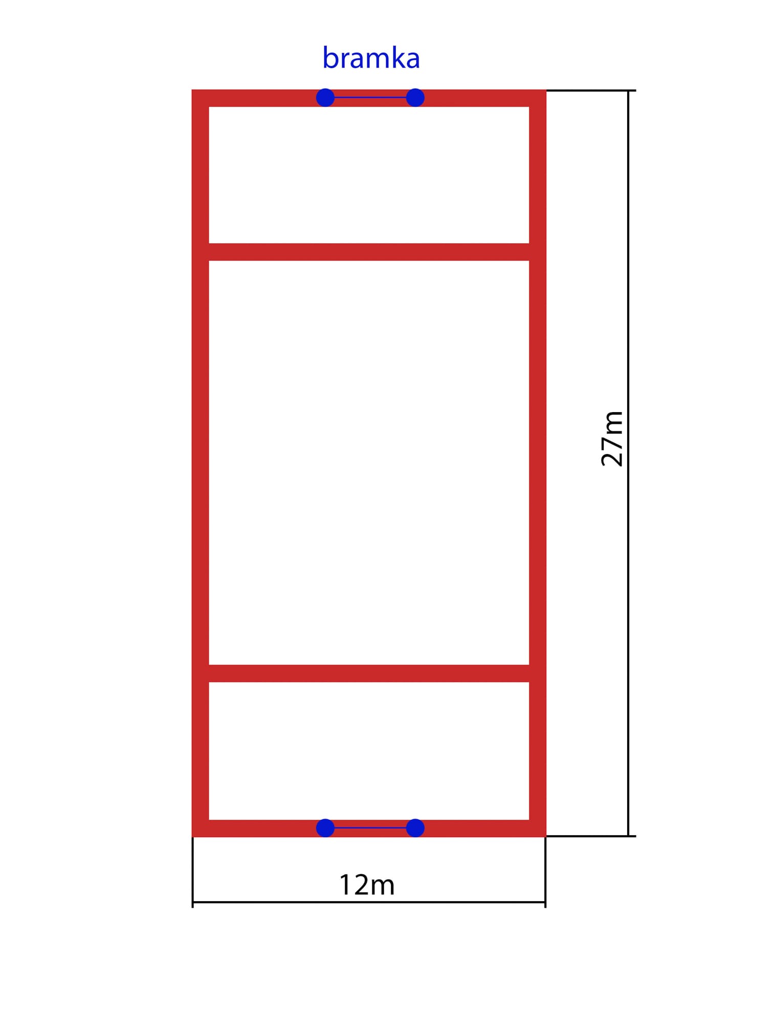 Niebieskie linie boiska do piłki ręcznej 12x27m