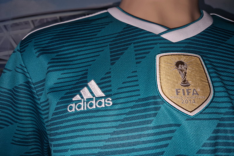 Piłkarska koszulka narodowej drużyny Niemiec - DFB (Deutscher Fussball-Bund), wyprodukowana przez koncern Adidas /Climalite/.