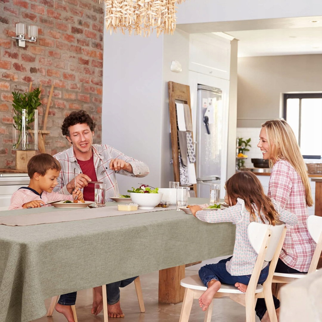 - Nowoczesny design: prostokątny obrus Deconovo z tkaniny typu faux linen (materiał imitujący len) stanowi doskonały dodatek do każdego wnętrza, zarówno w celach dekoracyjnych, jak i praktycznych. Idealny na różne okazje – do kawiarni, na kolacje, wesela, brunche, bufety, pikniki, przyjęcia dla dzieci i wiele innych.