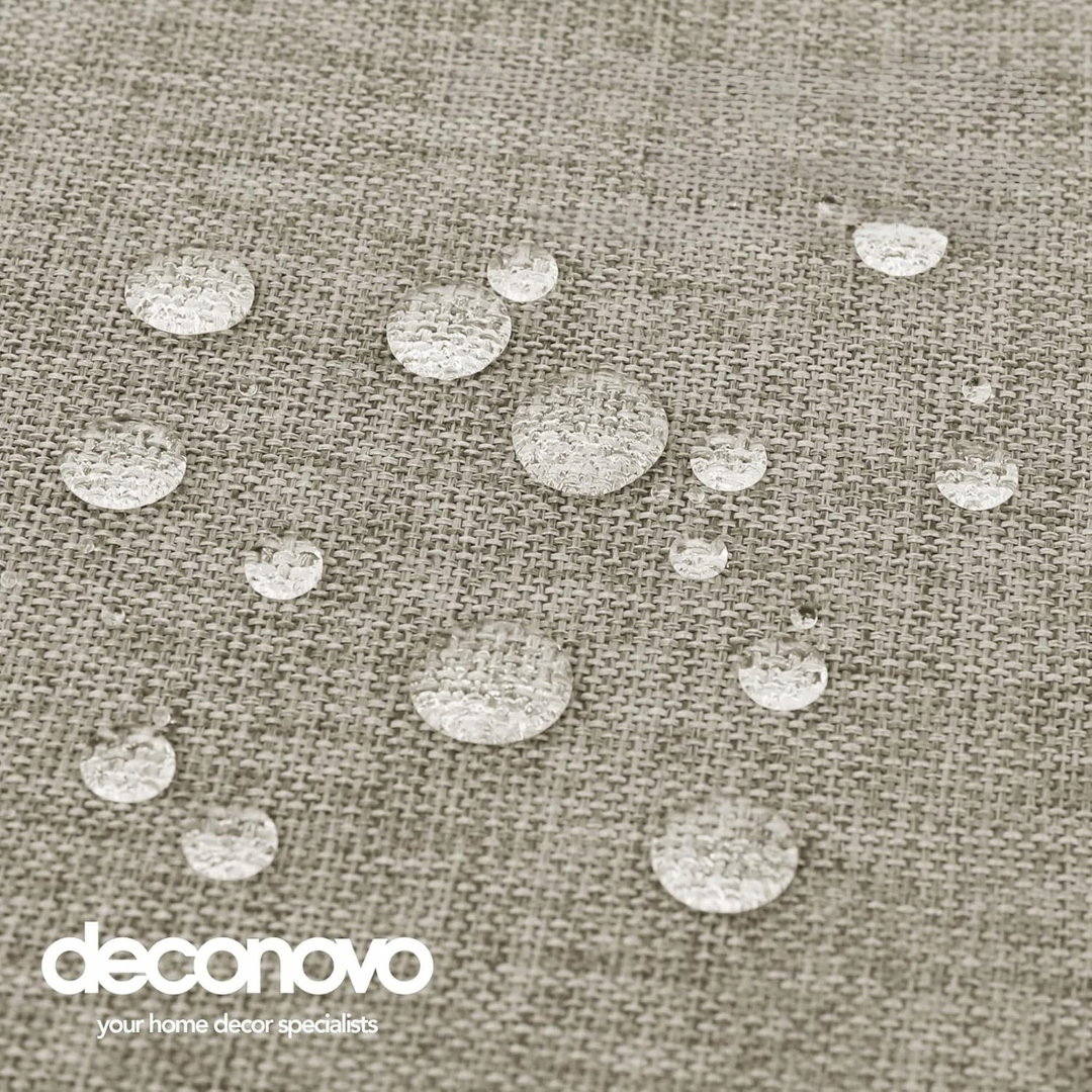 Obrus Deconovo wykonany jest z wysokiej jakości materiału imitującego len, odporny na wodę i plamy, co ułatwia jego czyszczenie.