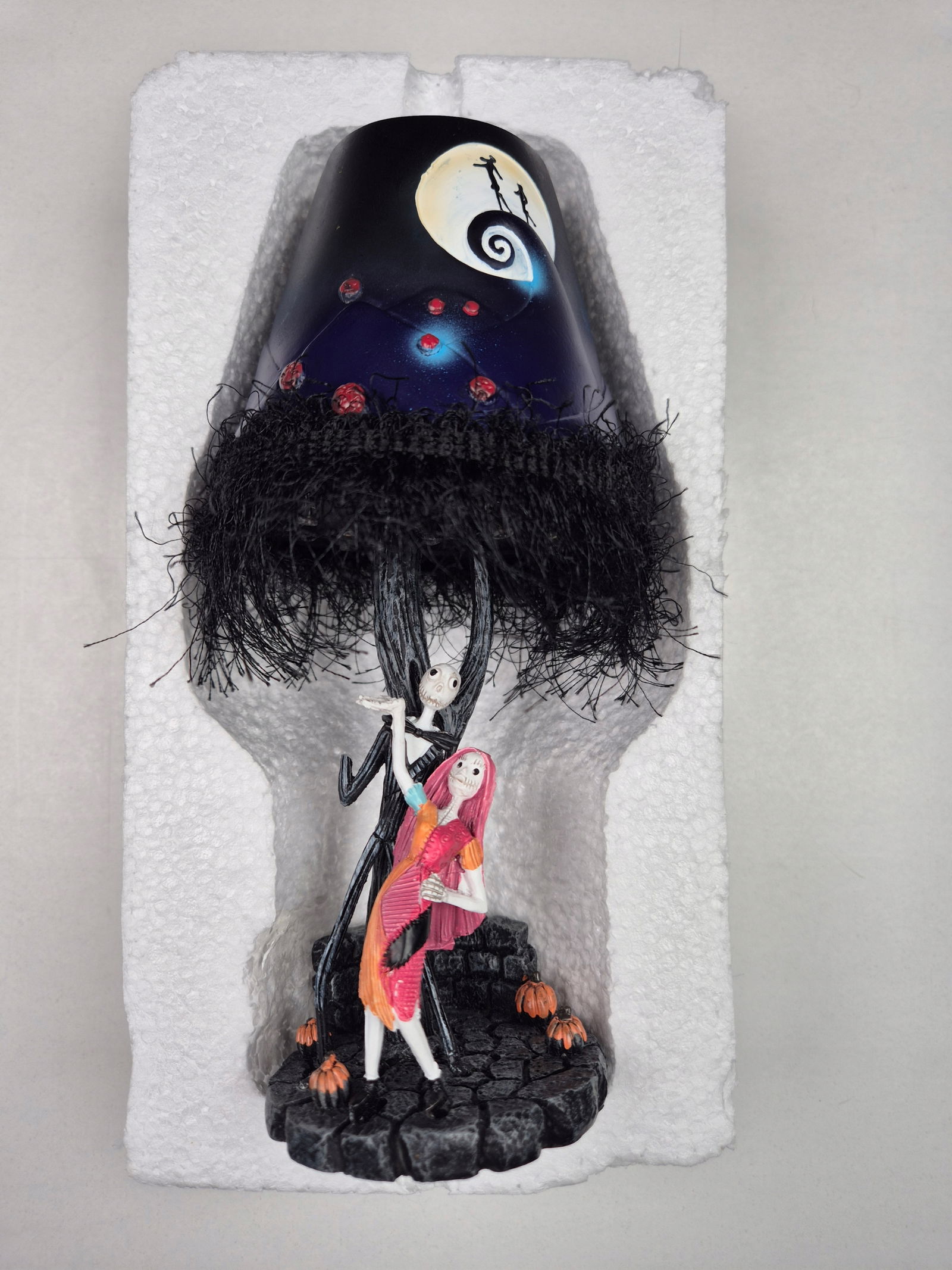 Dekoracja w klimacie Halloween przedstawia Jacka w stylu nawiązującym do kultowych motywów „Przedświątecznego koszmaru”. Czarna, zdobiona forma i klosz z frędzlami tworzą przyciągający wzrok element wystroju.