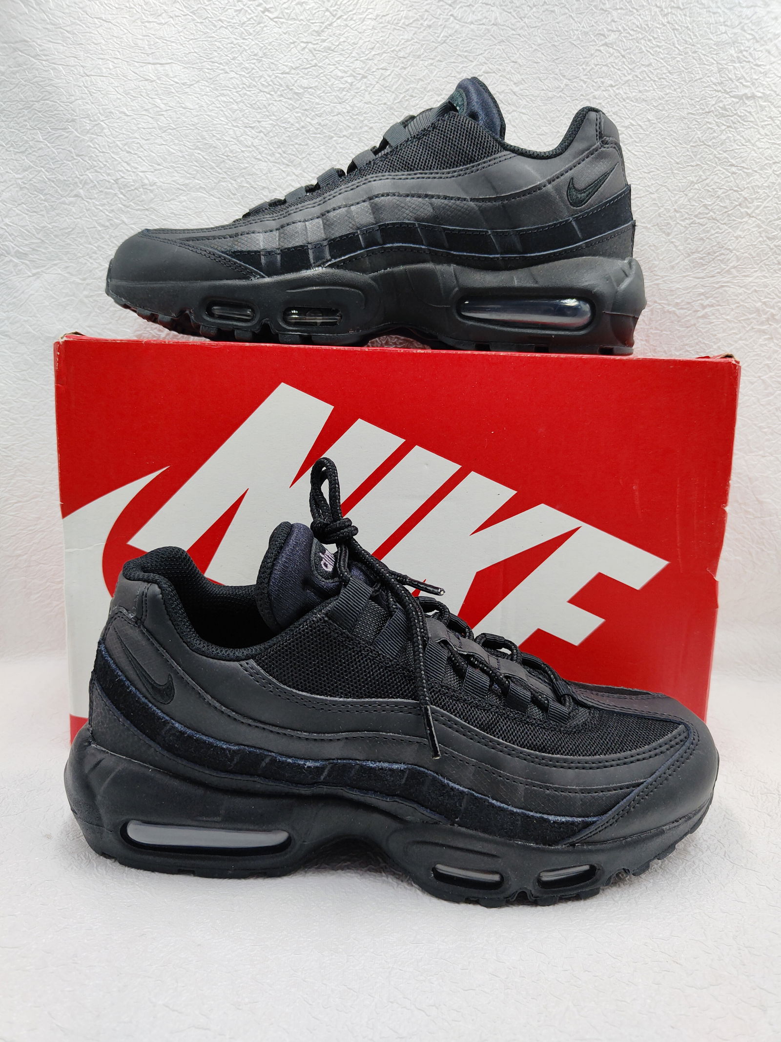 Skórzane buty sportowe Nike Air Max 95 Essential w rozmiarze 41 (wkładka 26 cm). - Wykonane z naturalnej skóry licowej, zapewniającej trwałość i komfort użytkowania. - Okrągły nosek zapewnia przestrzeń palcom, co przekłada się na komfort chodzenia. - Wkładka: materiał tekstylny - Materiał wewnętrzny: Materiał tekstylny - Materiał zewnętrzny: Skóra zamszowa naturalna, Skóra syntetyczna, Skóra licowa naturalna, Materiał tekstylny - Materiał podeszwy: Materiał syntetyczny Technologie: Nike Air Model: C13705-001