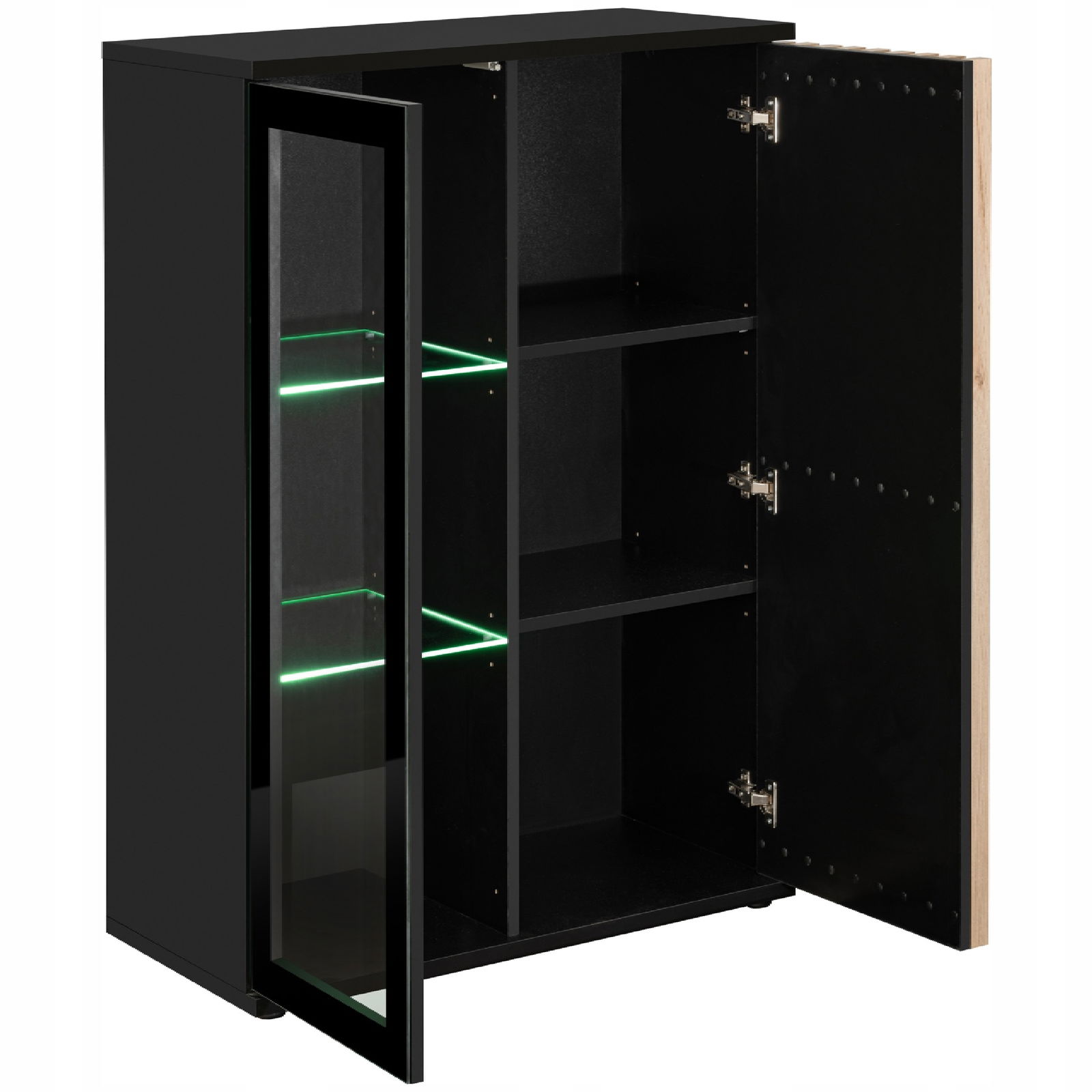 Niska WITRYNA CAMERON - Przeszklona + Oświetlenie LED | HICKORY + Czarny