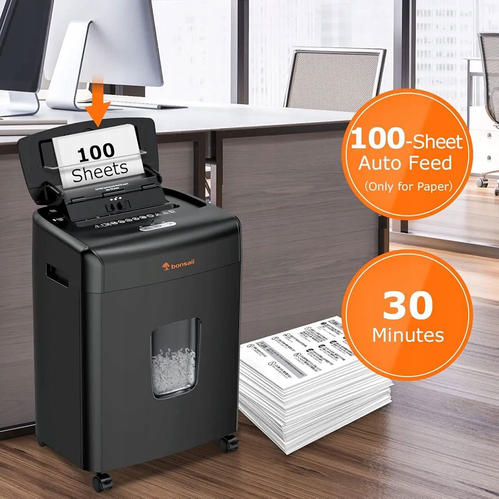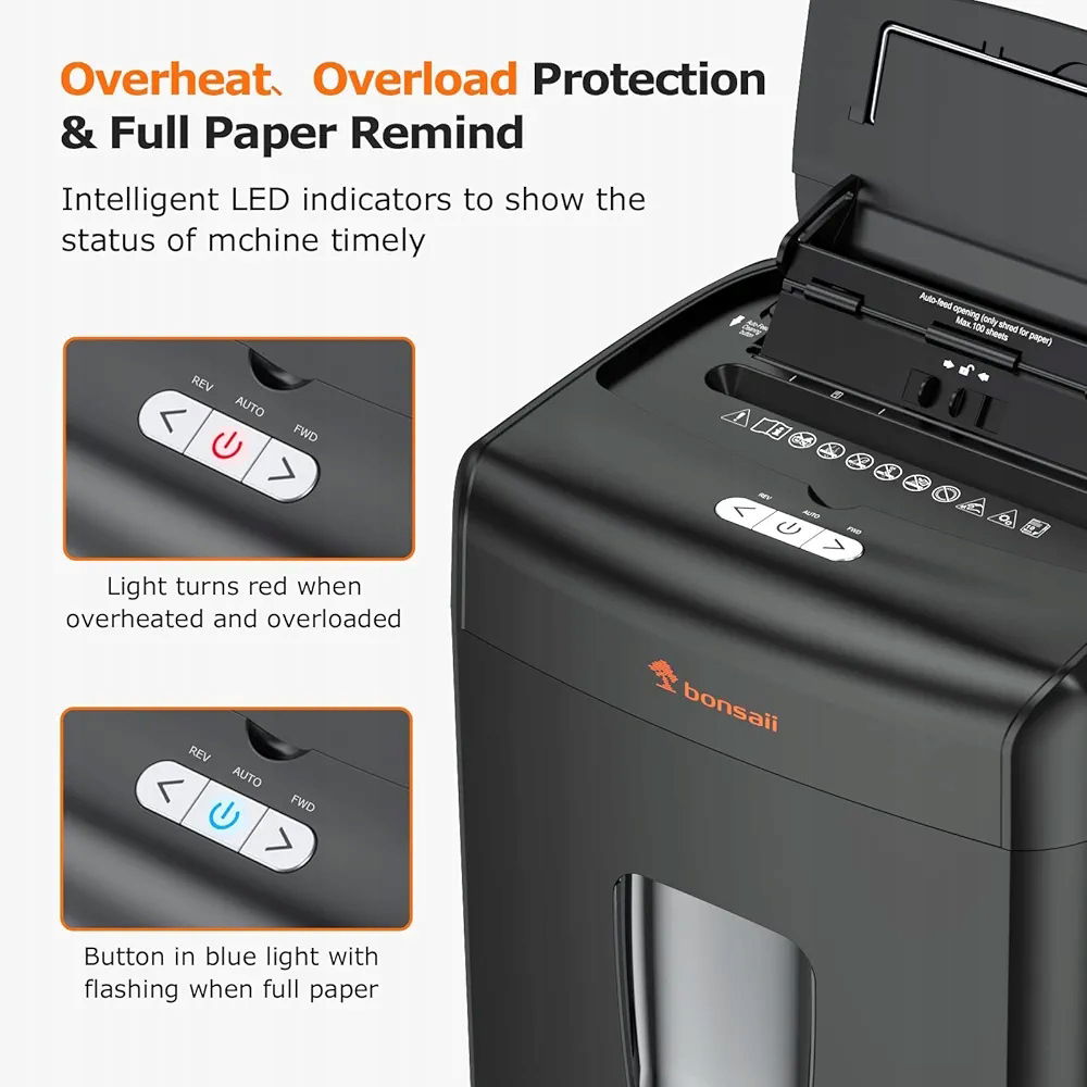 Automatyczna rozdrabniarka 100 arkuszy i ręczna 10 arkuszy】Automatyczny podajnik do biura z 2 trybami. Tryb automatyczny ma maksymalną zdolność rozdrabniania do 100 arkuszy w jednym przebiegu, może pracować nieprzerwanie przez 30 minut; tryb ręczny ma maksymalną zdolność rozdrabniania 10 arkuszy, może pracować nieprzerwanie przez 10 minut. schłodzony.