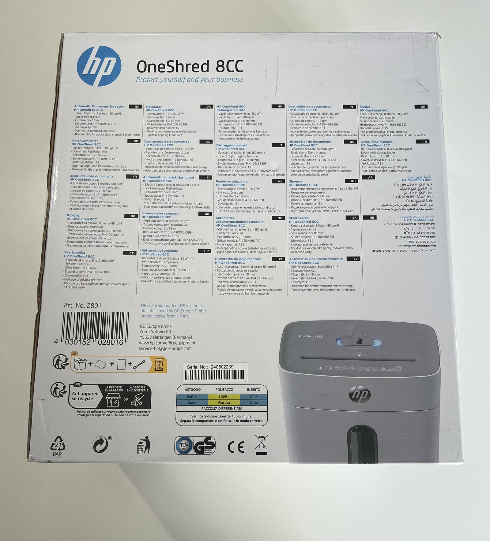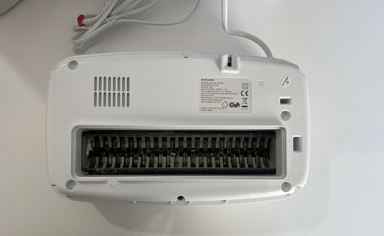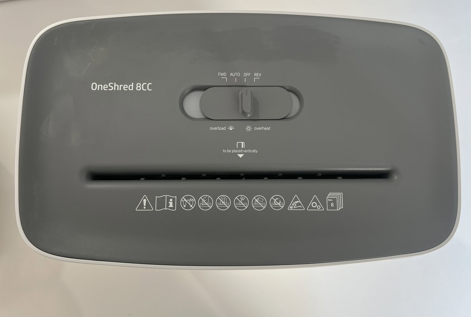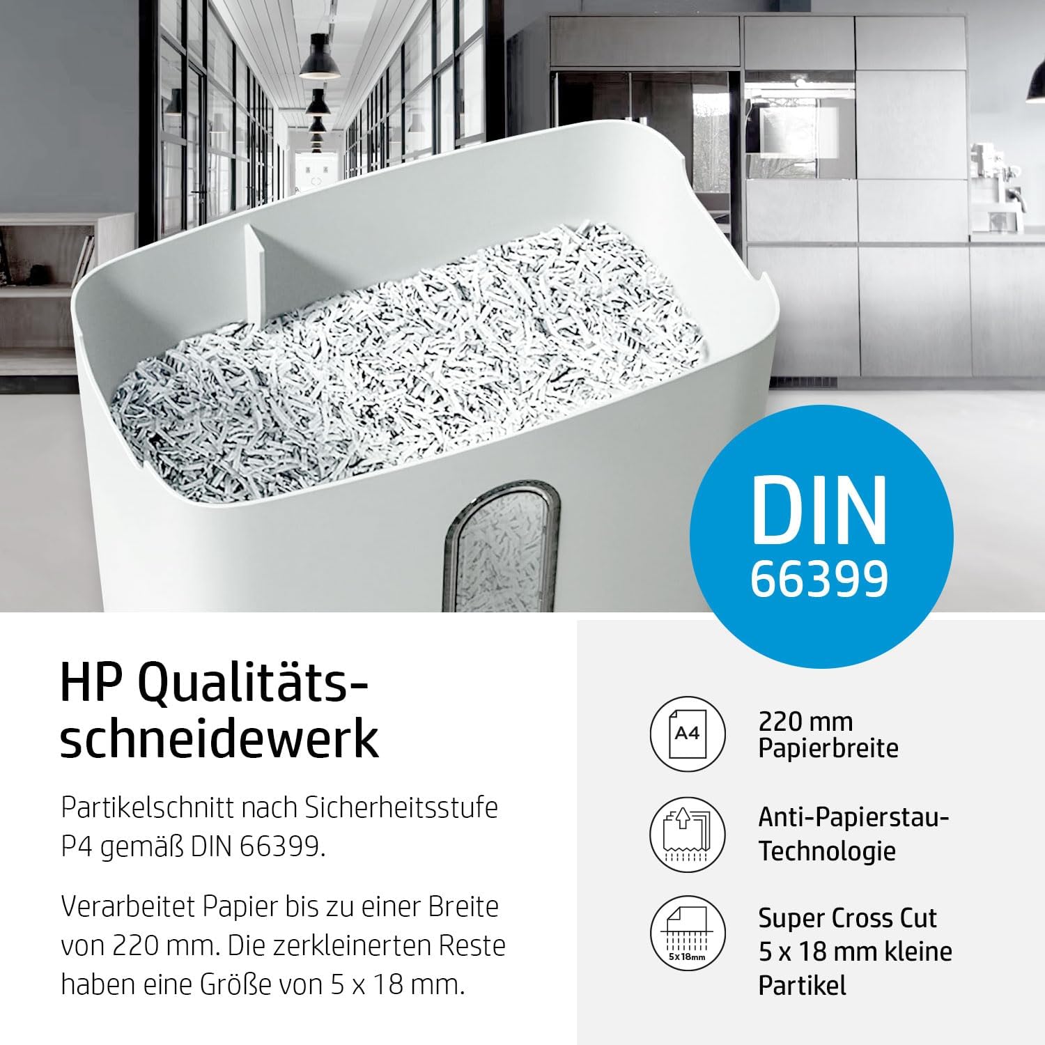 Niszczarka papieru HP OneShred 8CC P4 | Niszczarka papieru z cięciem poprzecznym na cząstki | Niszczarka papieru do domu i biura | Pojemność cięcia: 8 arkuszy | Niszczarka papieru z pojemnikiem na odpady o pojemności 15 l