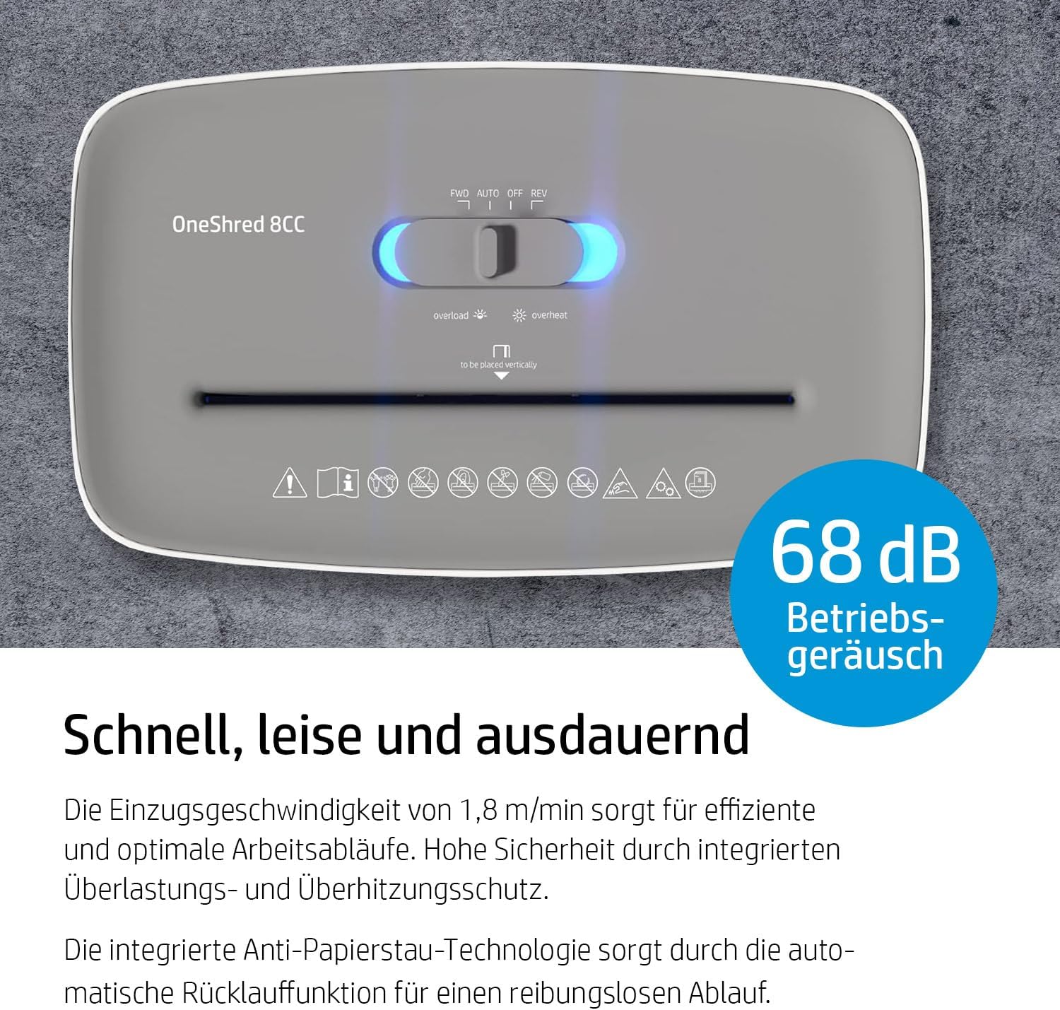 WYDAJNE CIĘCIE: Kompaktowa niszczarka niszczy jednocześnie do 8 arkuszy A4 z prędkością 1,8 m/min – niezawodna, cicha i energooszczędna w codziennym użytkowaniu.