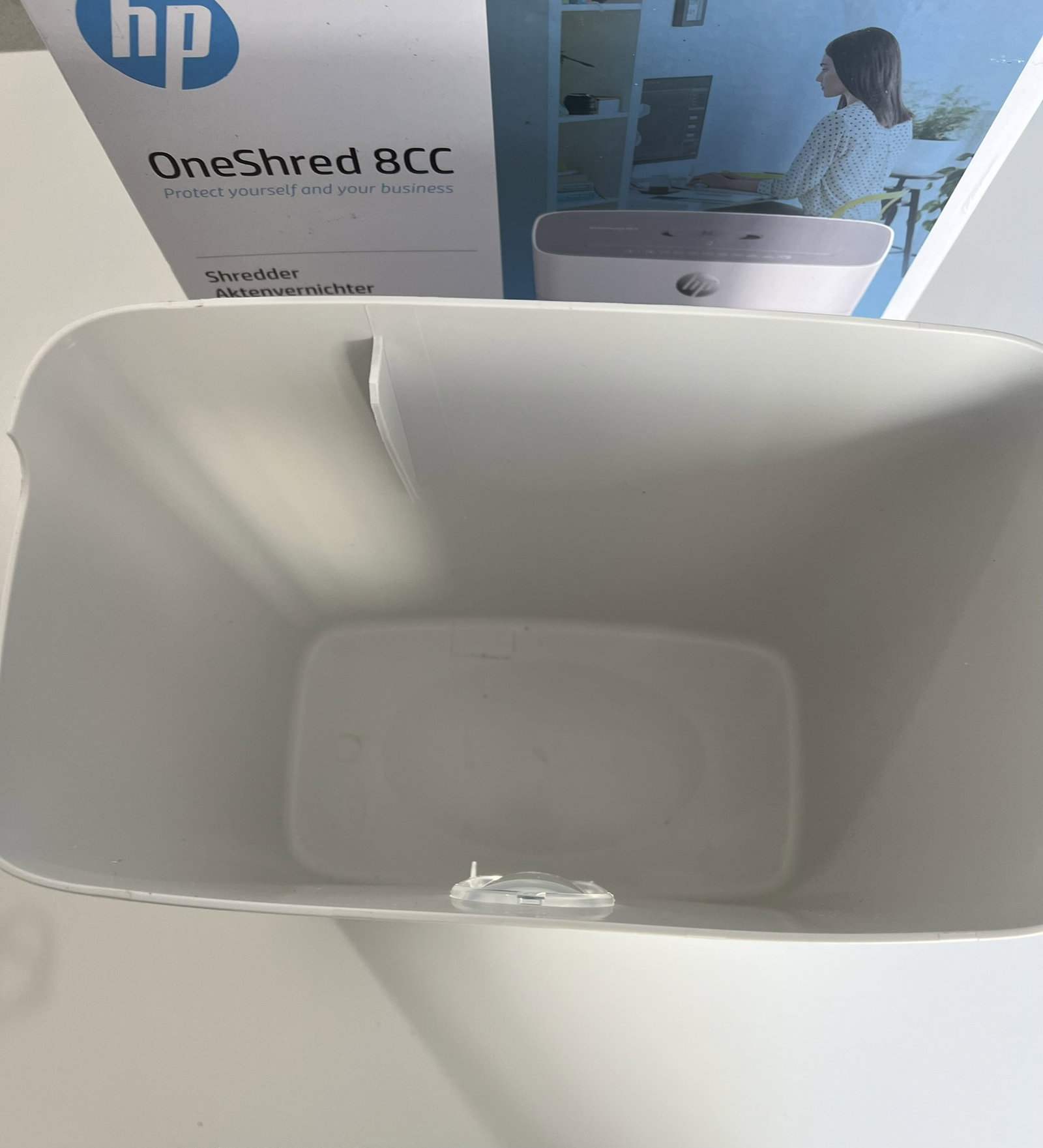 Precyzyjne niszczenie: Niszczarka papieru HP OneShred 8CC niszczy poufne dokumenty na ścinki (P-4), zapewniając w ten sposób bezpieczne i zgodne z przepisami RODO niszczenie danych w biurze lub w domu.