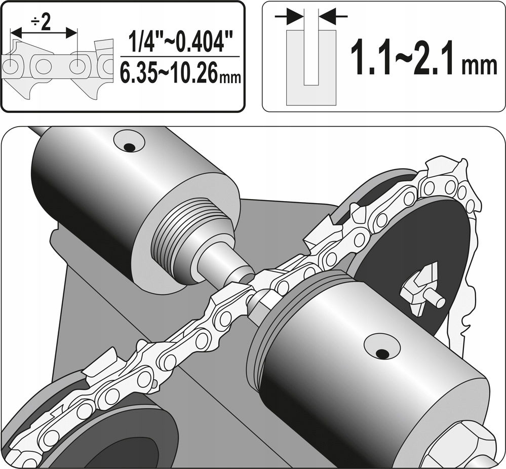 Zakuwarka YT-84970 przeznaczona jest do precyzyjnego nitowania łańcuchów tnących pilarek łańcuchowych. Dzięki zastosowaniu wymiennych końcówek możliwe jest optymalne dopasowanie do łańcuchów o różnej grubości i podziałce. Umożliwiają zakuwanie łańcuchów na bębnach YATO, a także serwisowanie łańcuchów YATO oraz innych producentów. Zakres pracy: - szerokość 1,1~2,1 mm - podziałka 1/4"~0,404" Zakuwanie łańcuchów na bębnach YATO, a także serwisowanie łańcuchów YATO oraz innych producentów. wymienne końcówki