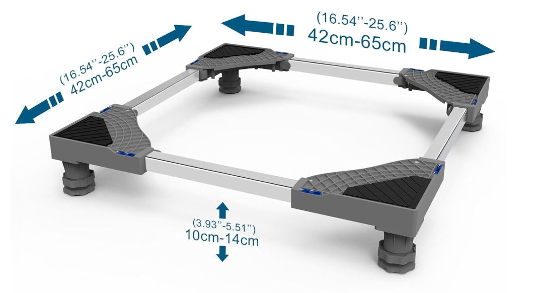 - ✴️【Regulowany rozmiar】Długość / szerokość cokołu do pralki: 42 ~ 65 cm. Wysokość: 10 ~ 14 cm. Jest to podstawa teleskopowa, którą można przedłużyć w zależności od pralki, suszarki i lodówki.