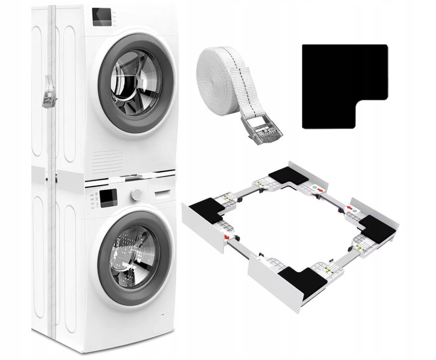 - ✴️[Podkładki antywibracyjne i pasek zapadkowy] Nasz zestaw do układania w stos zawiera 8 podkładek antywibracyjnych (zamontowanych) umieszczonych w 8 narożnikach platformy. Podkładki chronią maszynę podczas pracy i redukują hałas spowodowany drganiami lub tarciem. Pasek zapadkowy pomaga utrzymać obie maszyny i zapobiega ich przesuwaniu się podczas pracy pralki lub suszarki.