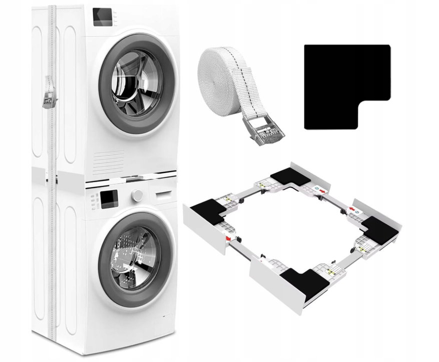 - [Oszczędź miejsce] Zestaw NIUXX do montażu pralek i suszarek. Zwiększ komfort swojej przestrzeni, instalując suszarkę na pralce. Umożliwia bezpieczny montaż suszarki bębnowej na pralce bez konieczności wiercenia w niej otworu.