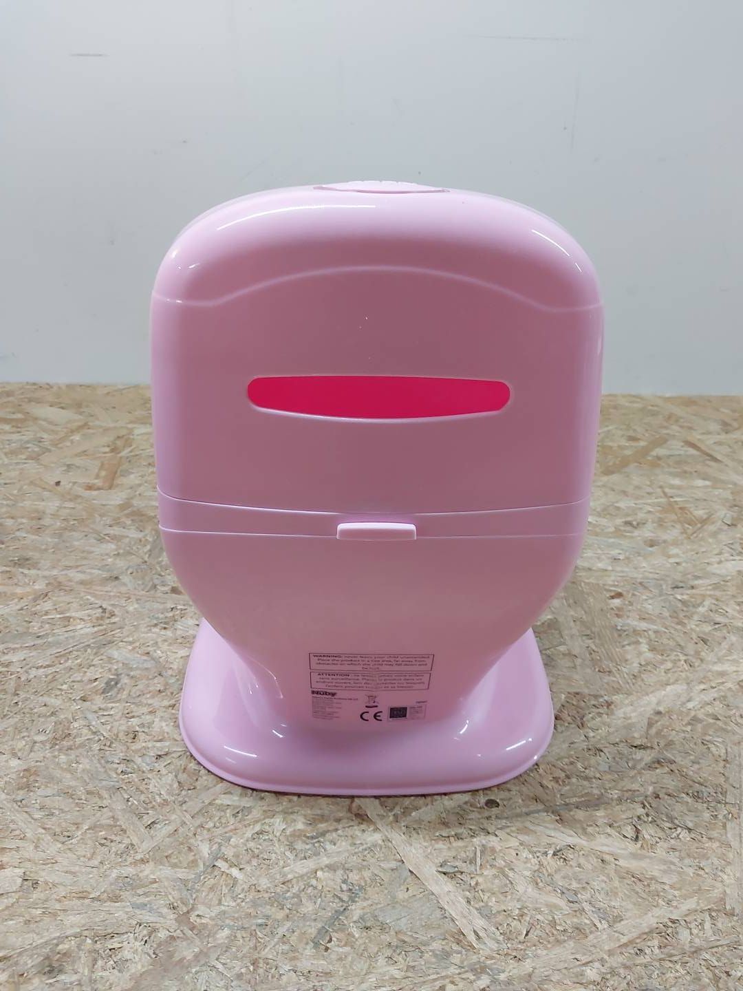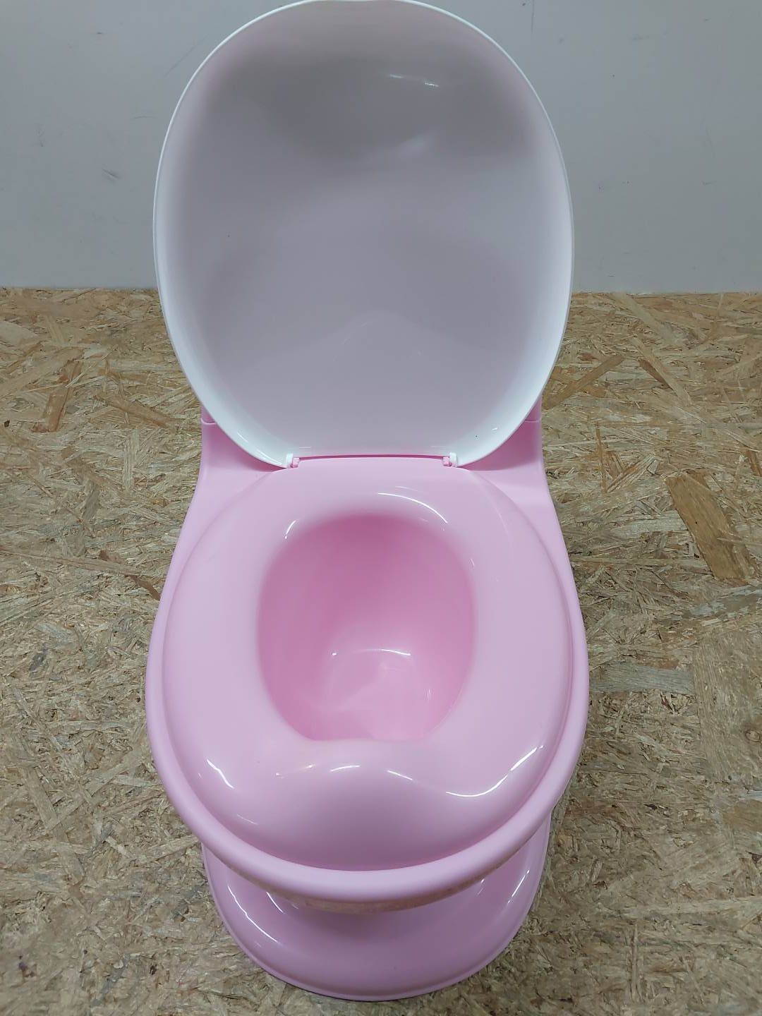 Toaleta posiada otwieraną i zamykaną pokrywę siedziska oraz wyjmowany pojemnik, dzięki czemu czyszczenie jest szybkie i wygodne. Zintegrowana ochrona przed pryskaniem utrzymuje się na swoim miejscu, a antypoślizgowy gumowy spód zapobiega przesuwaniu się nocnika podczas użytkowania. Tylny zbiornik został zaprojektowany tak, by można było w nim przechowywać pełnowymiarowe chusteczki, co jeszcze bardziej ułatwia naukę higieny.