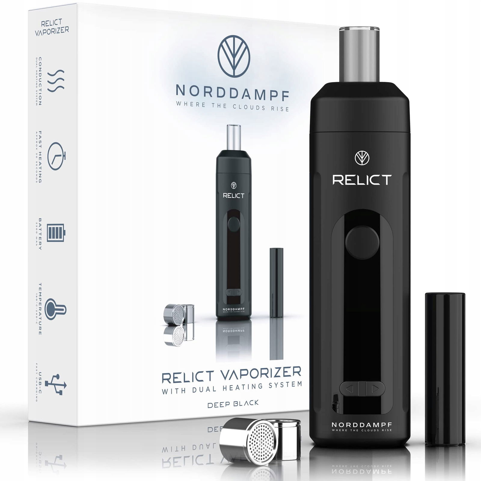 Innowacyjny waporyzator Norddampf RELICT — kompaktowy, bezprzewodowy, wyposażony w 2300 mAh baterię i technologie DHS (Dual Heating System) oraz Intellisense, która optymalizuje jakość pary. Wielofunkcyjny, elegancki i gotowy do użytku w 25–30 s .
