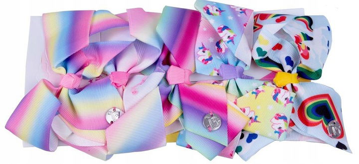 Zestaw PIĘCIU uroczych spinek do włosów w kształcie kolorowych kokardek będzie idealnym dodatkiem co codziennej fryzury każdej małej dziewczynki.