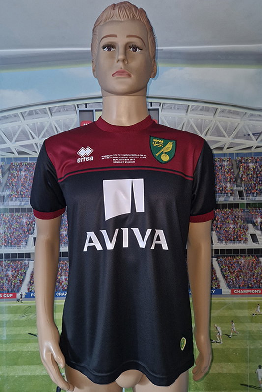 Koszulka upamiętnia wygrany przez “Kanarki” finał play-off z Middlesbrough Football Club, 2 do 0. Dzięki temu Norwich F.C. awansował do Premier League.