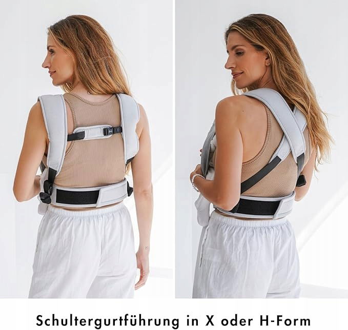 - Optymalne użytkowanie dzięki paskom naramiennym w kształcie litery X i H oraz ergonomicznemu pasowi w talii, paskom naramiennym o regulowanej długości i pasowi w talii o długości do 110 cm.