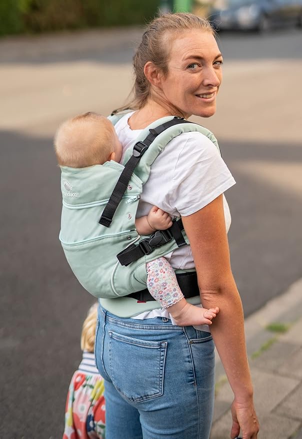 Zaprojektowany we współpracy z doradcami dotyczącymi noszenia w Niemczech, ergonomiczny nosidełko manduca idealnie łączy zalety szalików do noszenia z prostotą i bezpieczeństwem nosidełka. W przypadku manduki waga dziecka jest dobrze rozłożona na biodrach, co zapobiega zmęczeniu pleców. Dobrze wyściełane paski można regulować, pasek brzuszny o zaokrąglonym kształcie, który umożliwia mocowanie go zarówno na biodrach, jak i w talii nosidełka, jest szeroko regulowany i posiada trzypunktowe zapięcie, aby zapobiec przypadkowemu otwarciu. (regulacja talii do ok. 145 cm). kaptur, sprytnie regulowany przez nosidełko dziecka, nawet gdy dziecko zasypia na plecach, wspiera głowę, gdy jest zwinięta, służy jako biustonosz dla budzonego dziecka. Dobrze przemyślany kształt manduki gwarantuje położenie żaby nóg i pozwala dziecku zaokrąglać plecy podczas zasypiania. Długość pleców jest również regulowana. Dla maluchów przygotowano specjalne majtki zintegrowane z nosidełkiem dziecka, aby uniknąć zmusić małe nogi do dużych odchyleń. wymiana nóg jest dobrze wyściełana pod udami dziecka, co zapobiega mrowieniu u największych. manduca może być używany od urodzenia i do 20 kilogramów dziecka