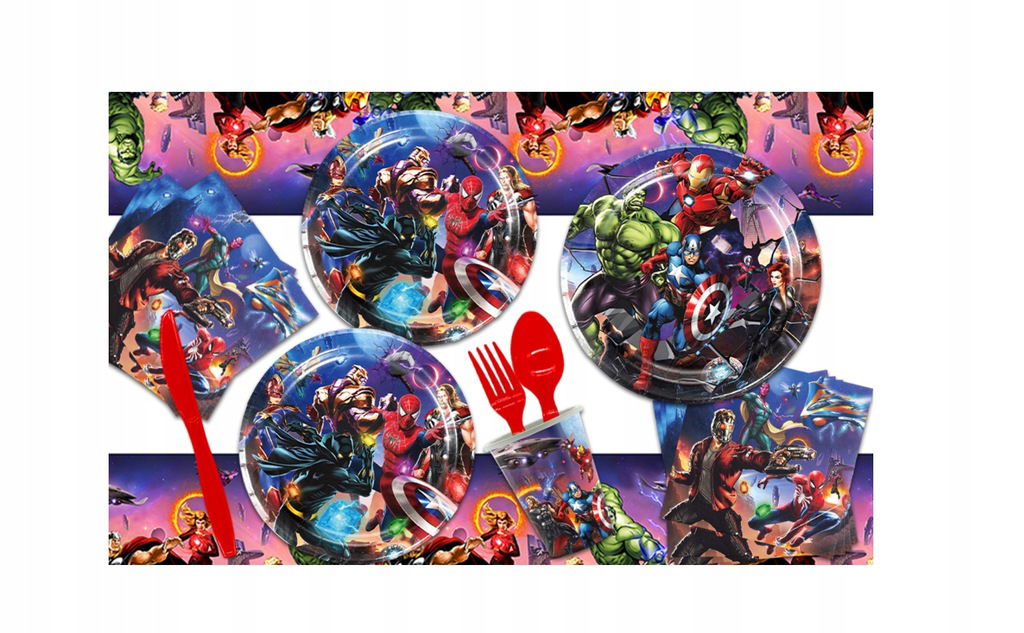 NOVBAON Avenger Duży zestaw urodzinowy balony talerze 4 OPIS