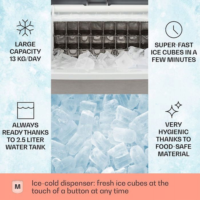 - Duża wydajność produkcyjna: Do 13 kg lodu dziennie