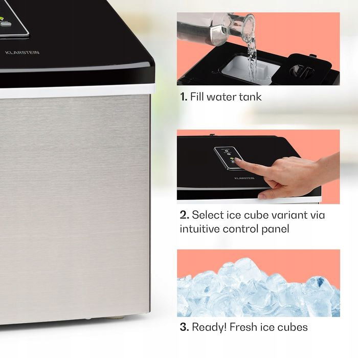 - Cechy dodatkowe: Kostkarka do lodu na imprezy, przejrzysty lód, przyjazna dla środowiska.