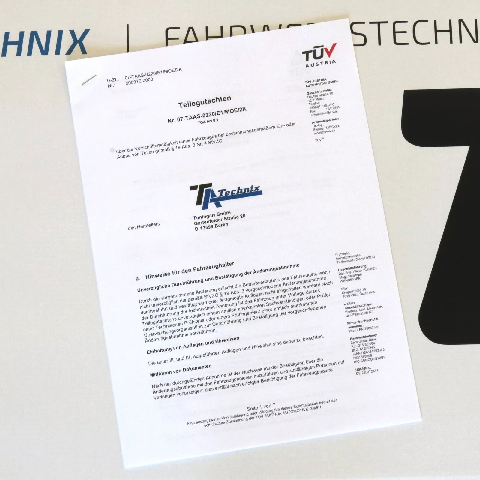 TA-Technix to jeden z najdynamiczniej rozwijających się niemieckich producentów części tuningowych. Zawieszenia sportowe, gwintowane, amortyzatory oraz sprężyny obniżające zdobyły już uznanie w całej Europie. Jako nieliczni w tym przedziale cenowym posiadają niemiecki atest TUV akceptowany we wszystkich krajach UE co daje pewność, że otrzymują Państwo bezpieczny i bardzo dobrze wykonany produkt.