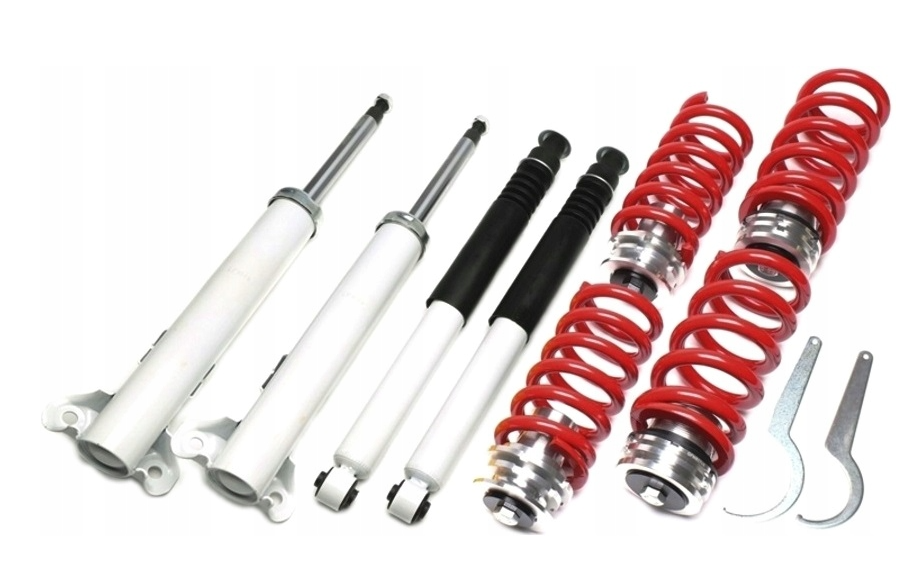 - Kompletne przednie i tylne zawieszenie gwintowane oraz klucz do regulacji wysokości.