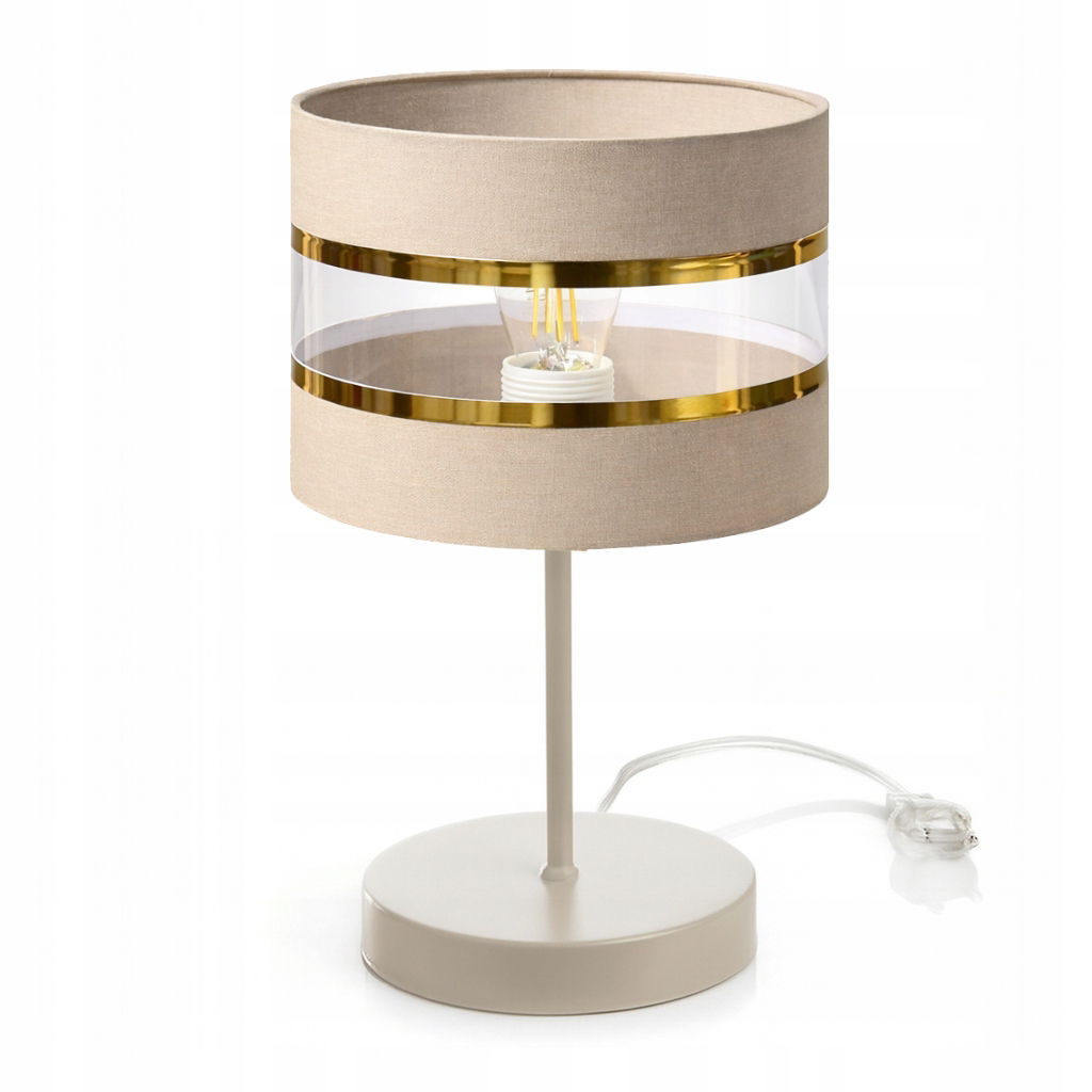 NOWOCZESNA ELEGANCKA LAMPKA NOCNA STOŁOWA METAL ABAŻUR ZŁOTO KASZMIR E27 LED