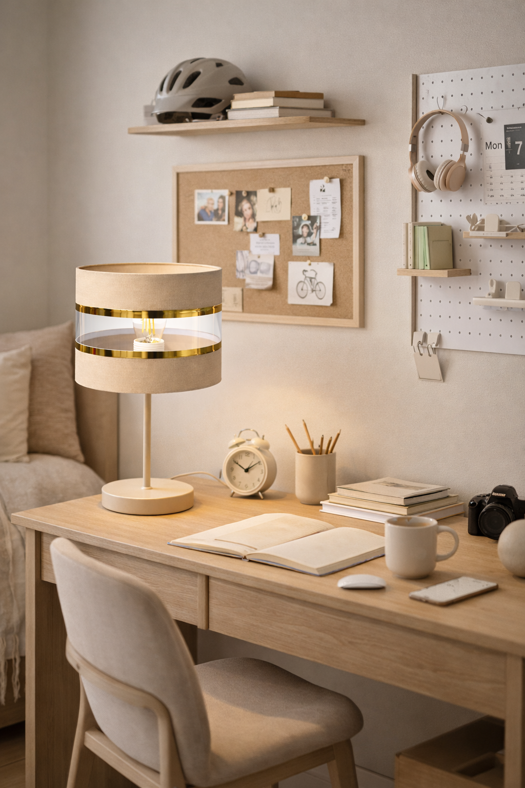 Lampka nocna Wena CASMIRA to propozycja dla osób, które cenią eleganckie dodatki i przytulne wnętrza. Kaszmirowa kolorystyka w połączeniu ze złotymi akcentami sprawia, że lampa subtelnie podkreśla styl pomieszczenia, nie dominując go.