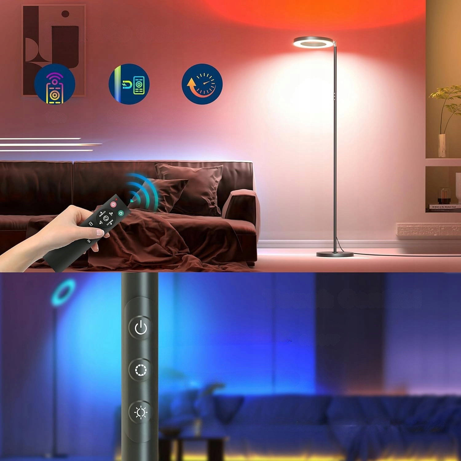 Lampa podłogowa RGB LED, 42 W ściemnialna lampa podłogowa zmieniająca kolor, 2700K-6500K lampa podłogowa z pilotem zdalnego sterowania, sterowaniem dotykowym i timerem, wysoka lampa podłogowa do [Klasa energetyczna F]