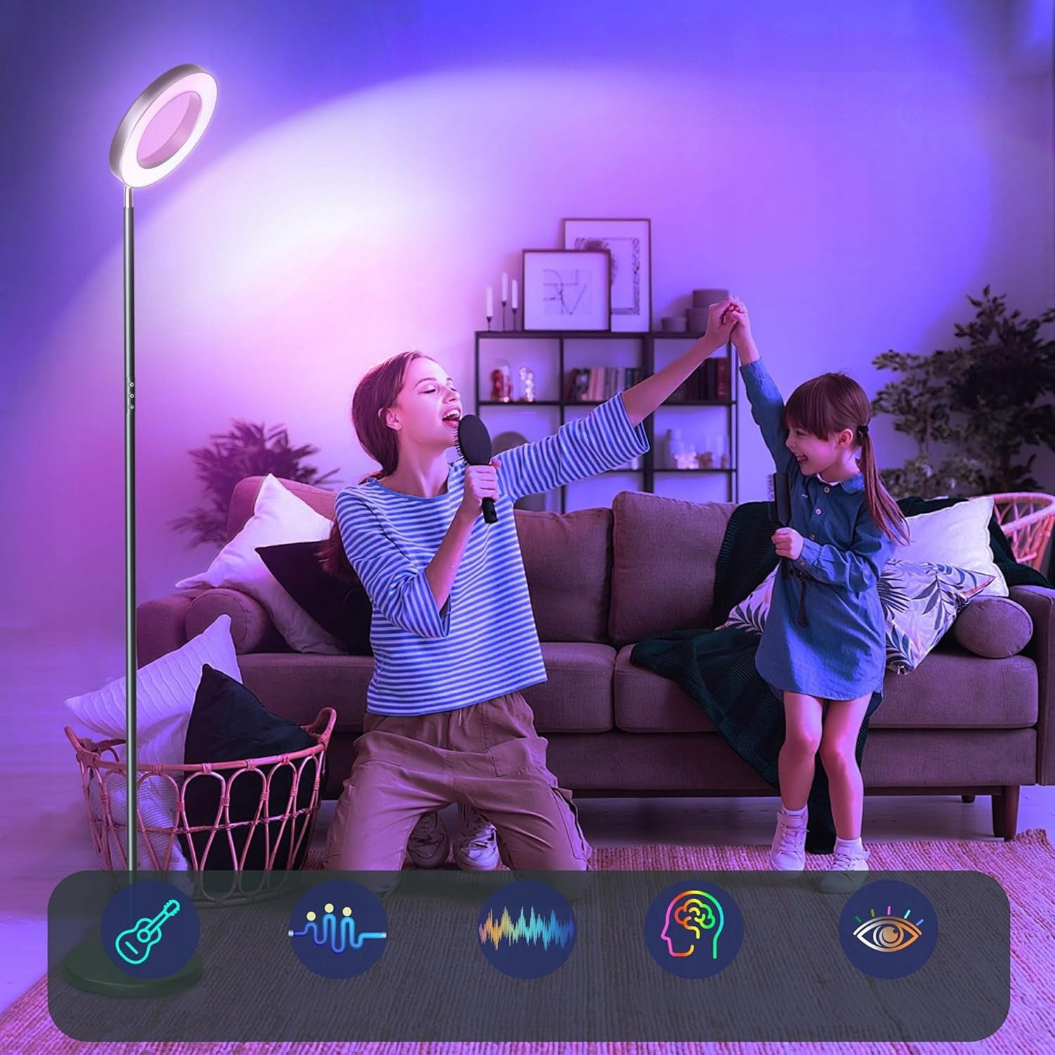- Zastosowanie: lampa doskonale sprawdza się w salonie, sypialni, biurze, pokoju gier czy jadalni. Dzięki regulacji jasności i barwy światła, można ją wykorzystać do czytania, pracy, odpoczynku lub zabawy. Sprawia, że każde pomieszczenie staje się bardziej klimatyczne, od przytulnego wieczoru po energetyczną imprezę.