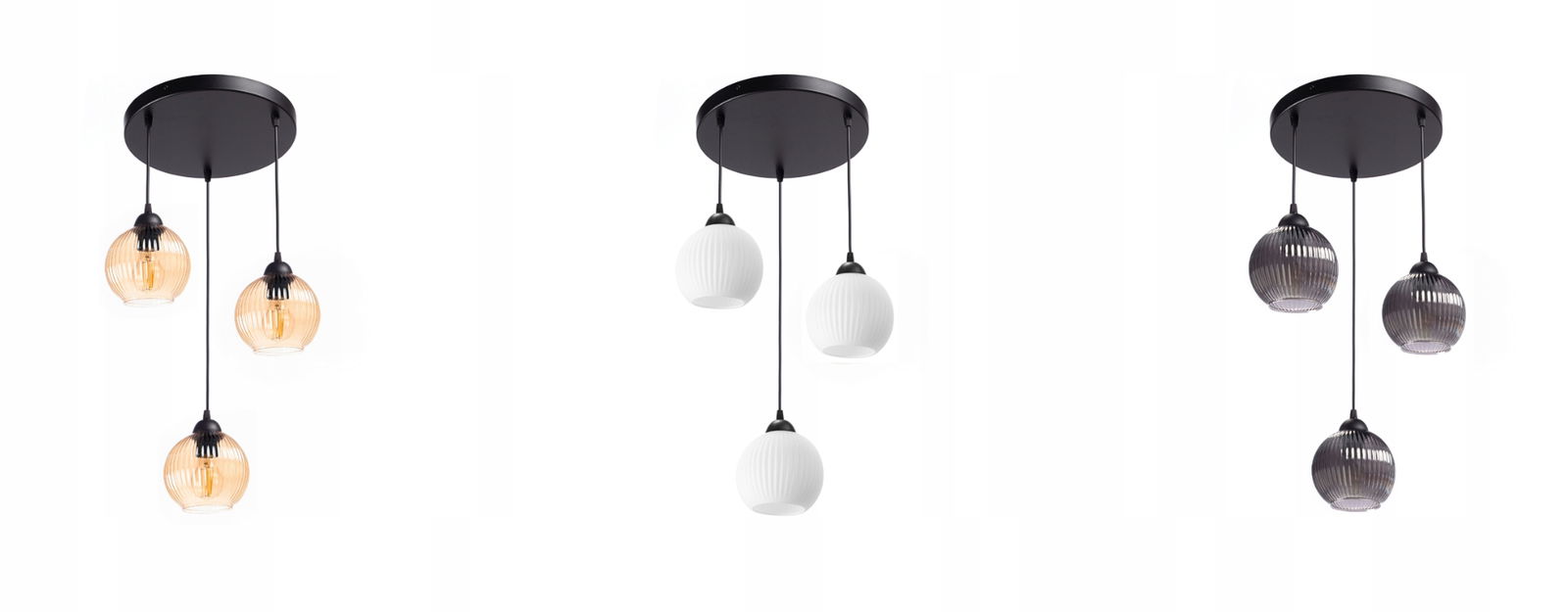 Klosze w trzech pięknych kolorach: biały mleczny, bursztyn i grafit to idealne rozwiązanie dla osób szukających eleganckiego oświetlenia do każdego wnętrza.