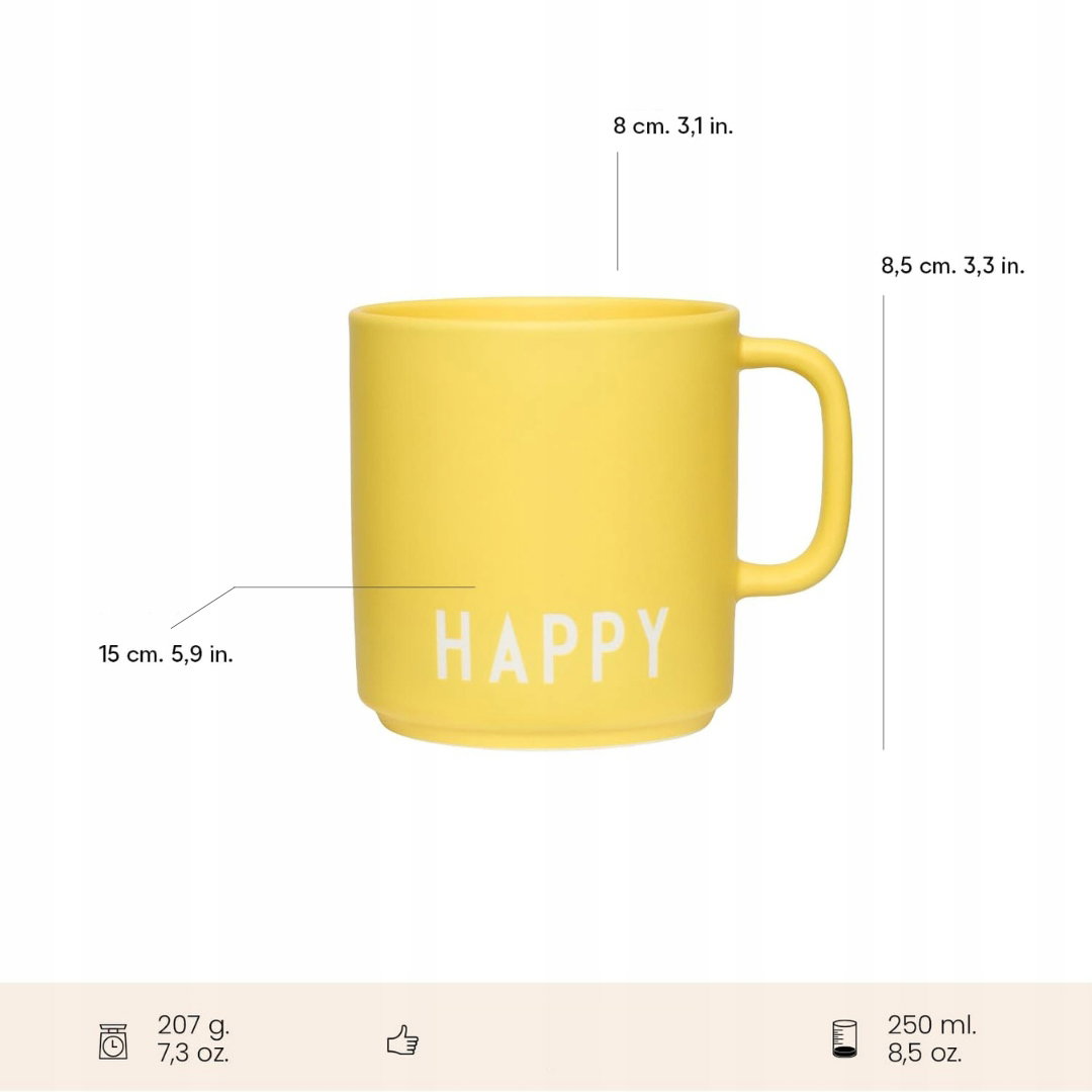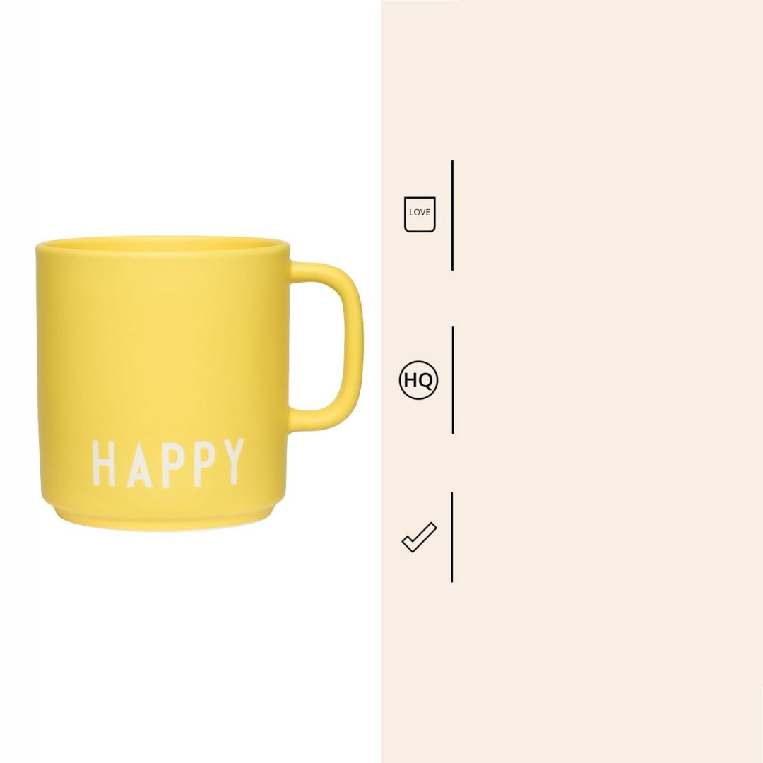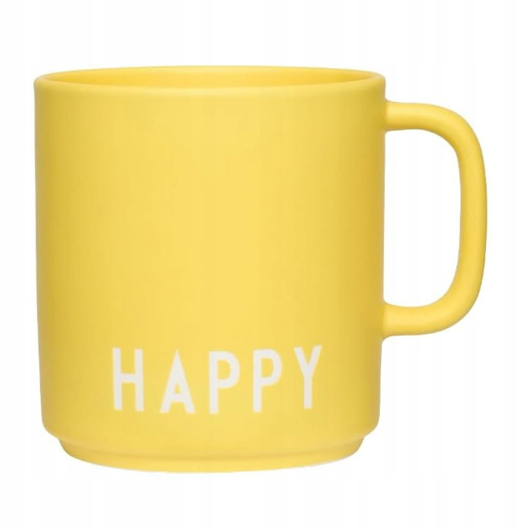 Nowoczesny kubek porcelanowy Design Letters - Stylowy żółty Happy