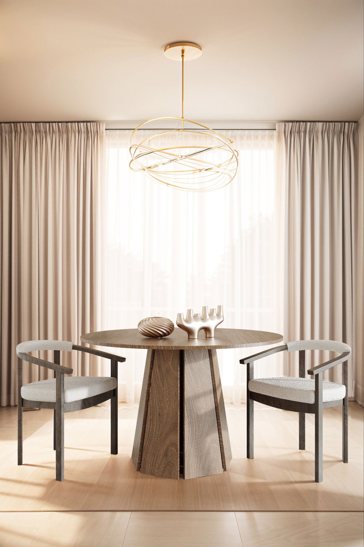 Stół STL221 to propozycja dla osób, które poszukują nowoczesnego mebla łączącego wyrazisty design z solidnym wykonaniem. Okrągły blat o średnicy 100 cm oraz wysokość 76 cm sprawiają, że stół doskonale sprawdzi się w jadalni, salonie, kuchni czy eleganckiej przestrzeni biurowej. Jego rzeźbiona, geometryczna podstawa nadaje wnętrzu charakteru i czyni stół centralnym punktem aranżacji.