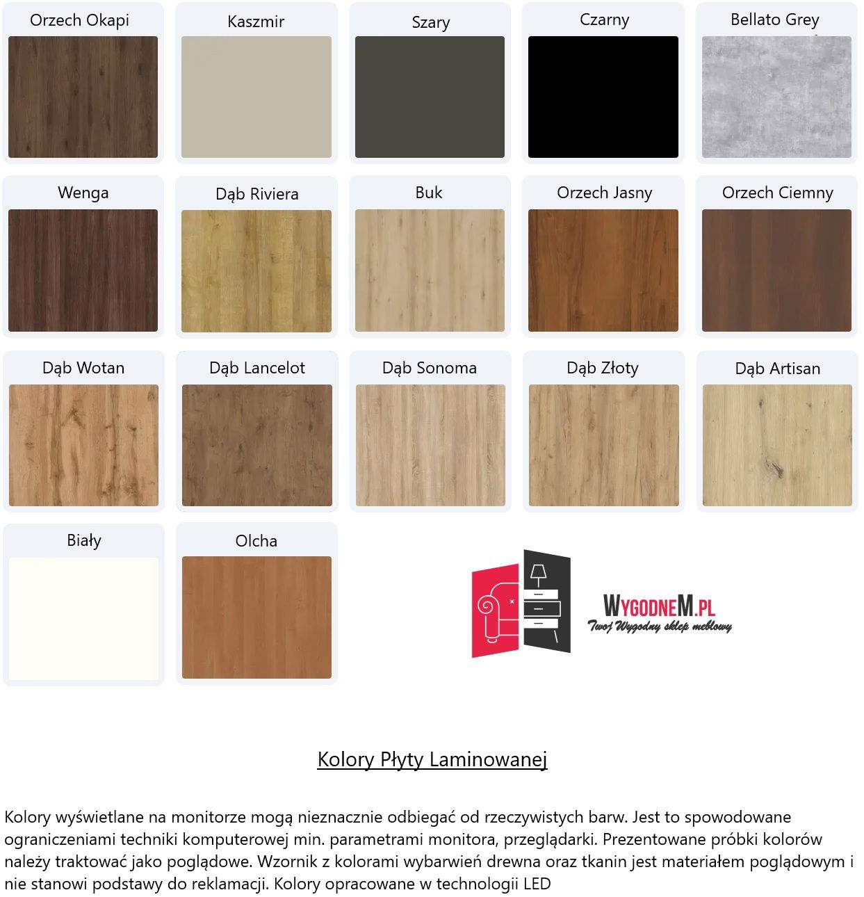 Podstawa: płyta laminowana (wzornik dostępny w galerii)