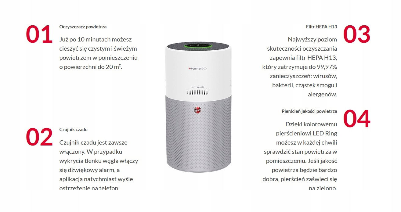 NOWY Oczyszczacz Hoover H-Purifier 300 HHP30C011 wbudowany czujnik CZADU!!