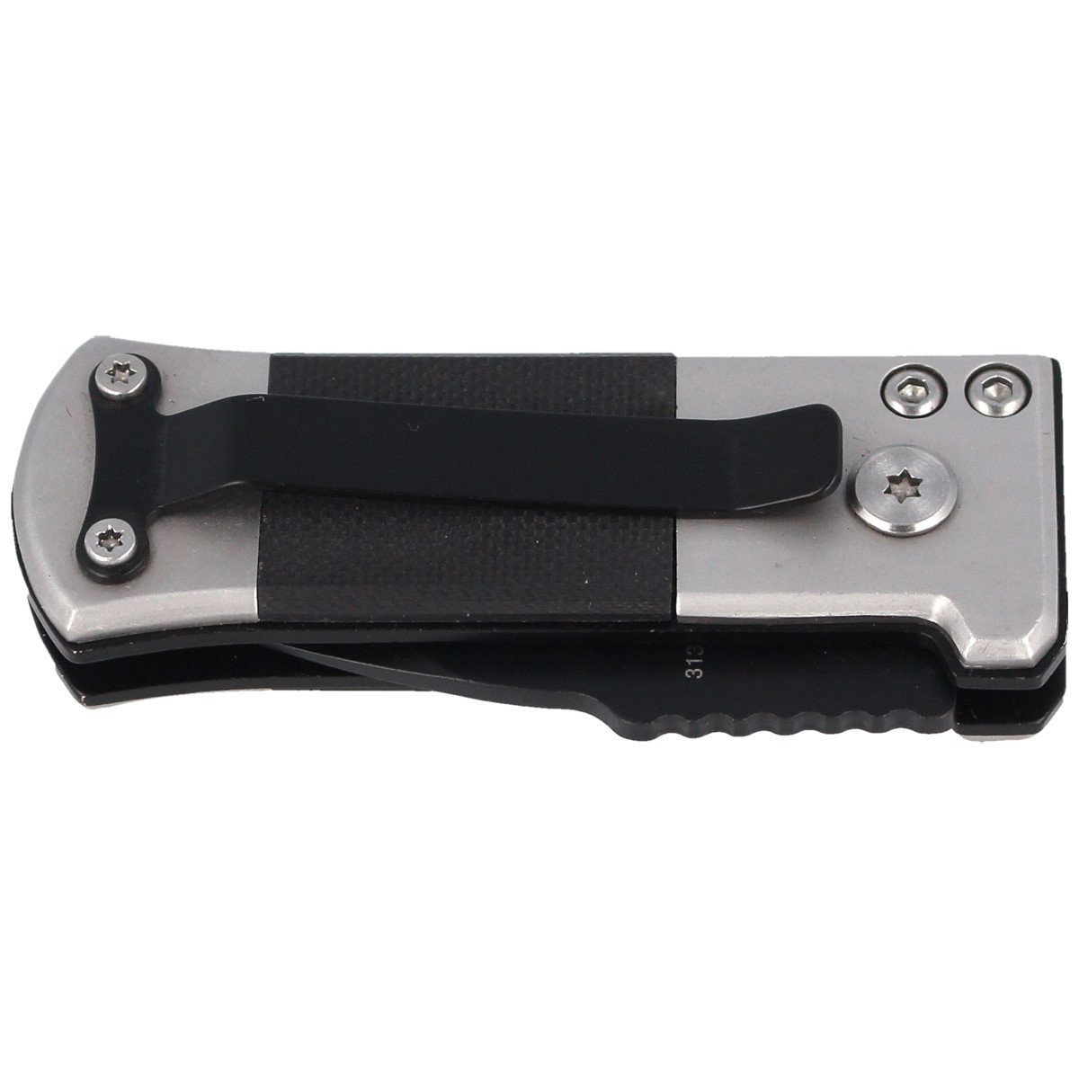 Rękojeść - wykonana ze stali nierdzewnej oraz czarnego kompozytu G10, mocowanych do stalowego szkieletu. Dzięki moletowanej powłoce tworzywa nóż nie ślizga się w dłoni podczas używania. W górnej części rękojeści znajduje się zabezpieczenie przed przypadkowym otwarciem noża. Jednopozycyjny prawostronny klips, umożliwia przenoszenie noża w pozycji tip-down (czubkiem ostrza do dołu).
