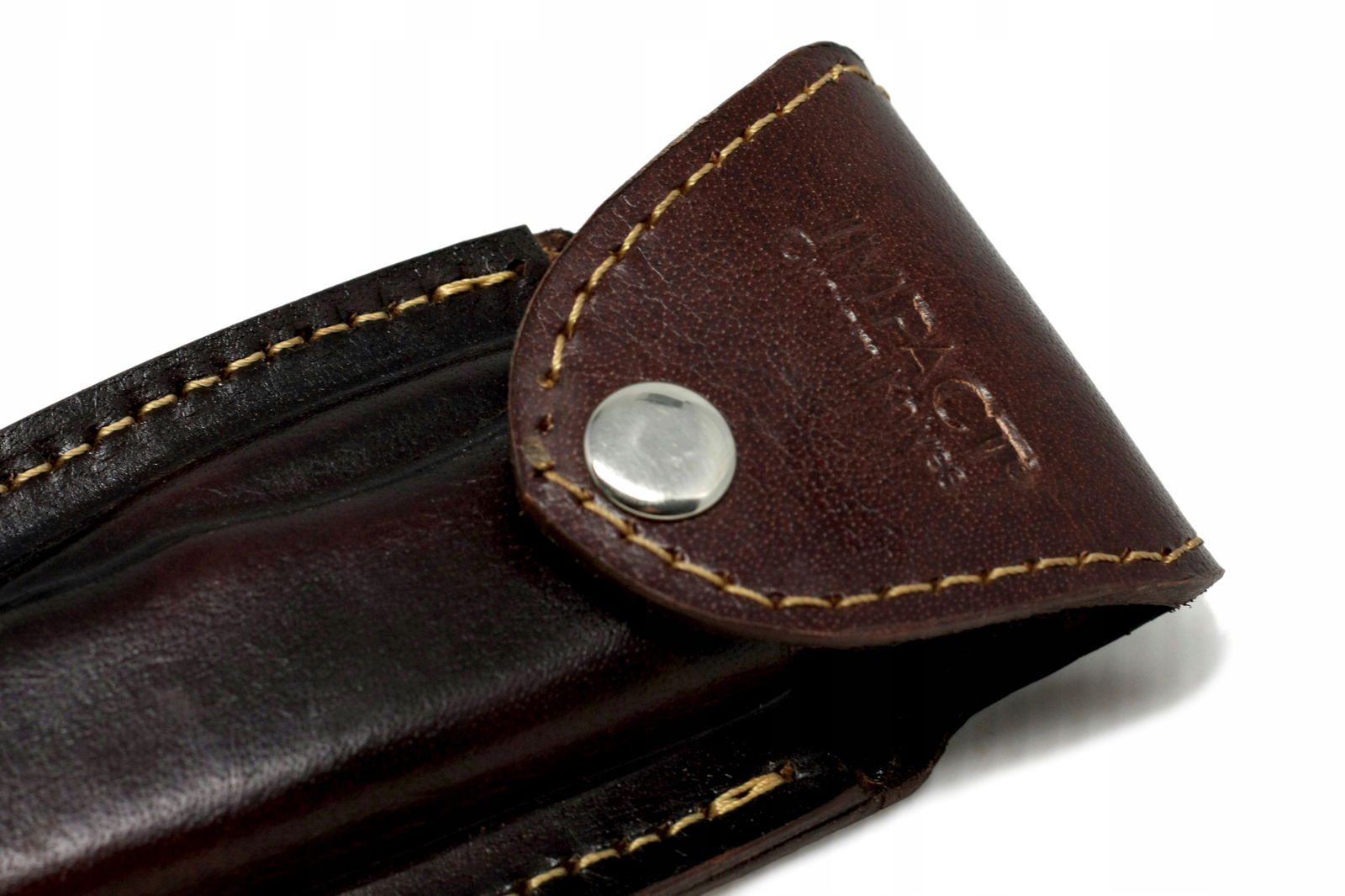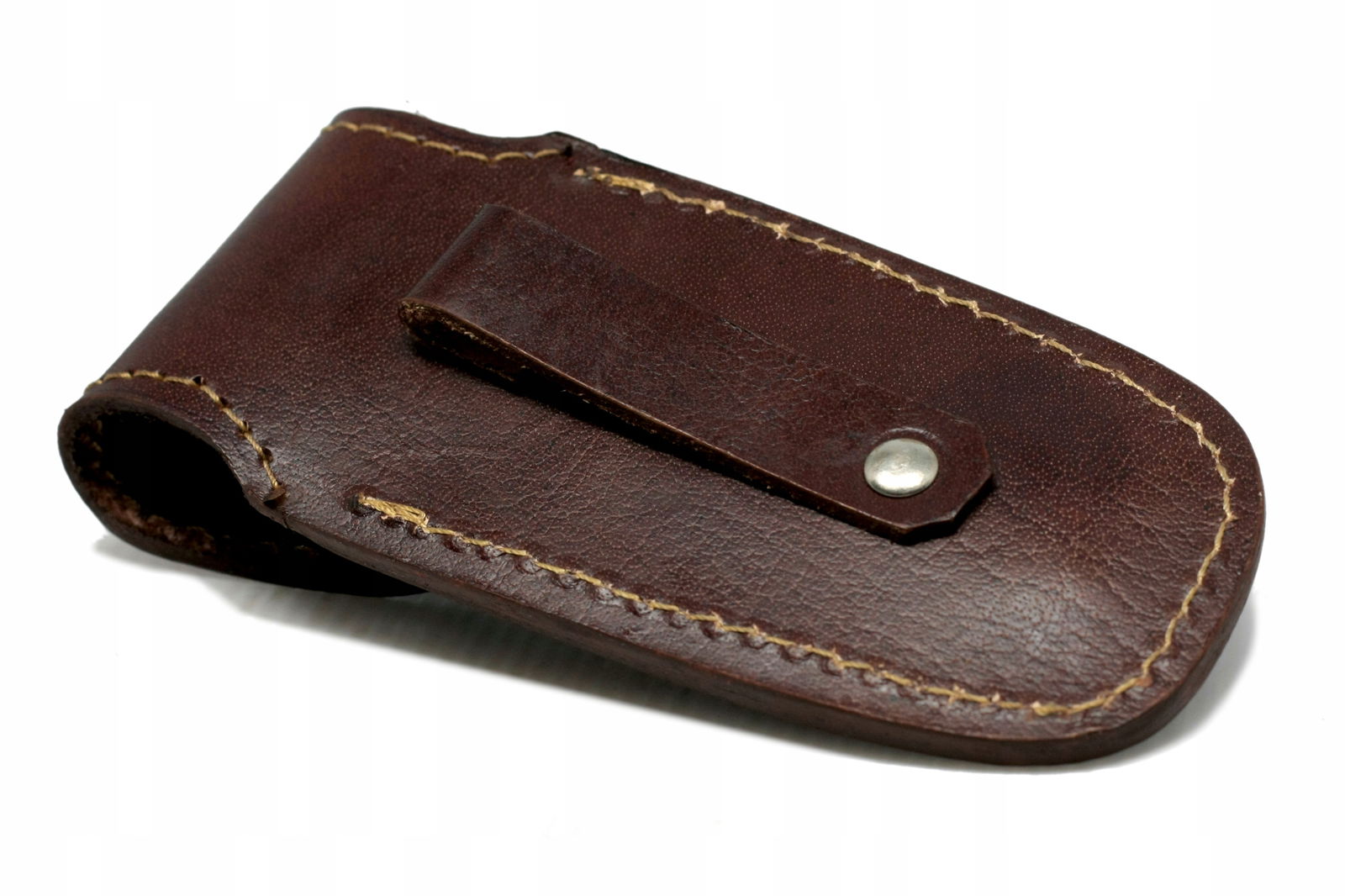 Ten nóż jest wyposażony w najwyższej jakości w całości ręcznie szytą bardzo grubą skórzaną pochwę. Bardzo gruba skóra cielęca i mocne przeszycia sprawiają, że ta osłona jest wytrzymała, przez co wytrzymuje długie lata trudnego i intensywnego użytkowania. Pochwę można nosić na pasku.