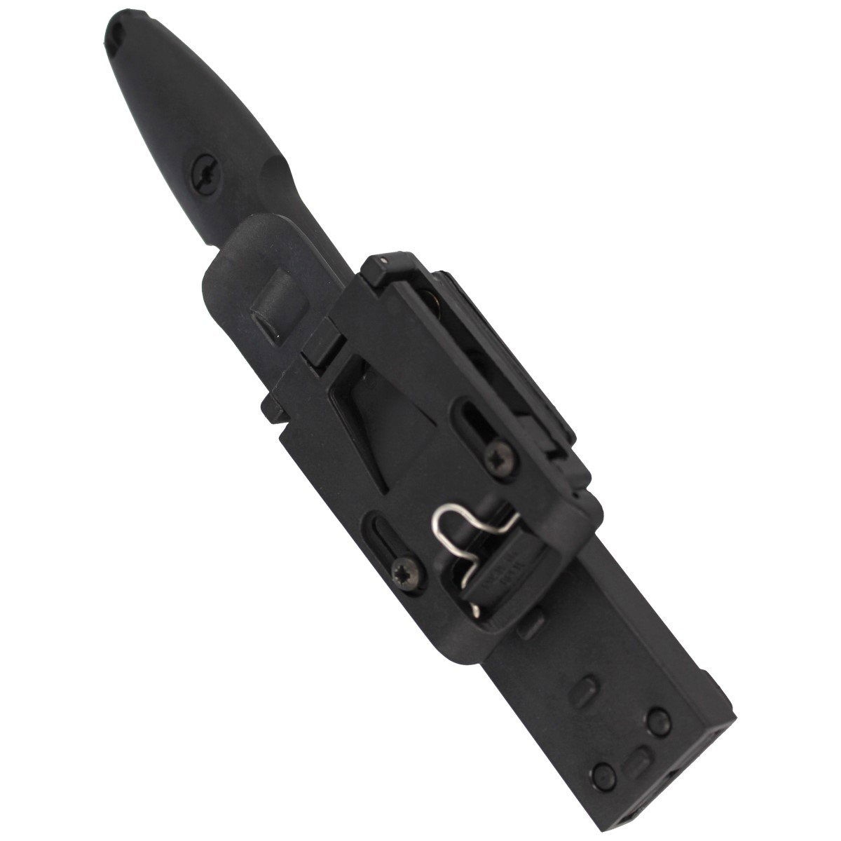 Pochwa - z utwardzanego polimeru, w kolorze czarnym umożliwia bezpieczne przenoszenie oraz i szybkie dobycie noża. Trzy możliwości ustawienia kąta przenoszenia etui (poziomo, pionowo i ukośnie pod kątem 45°). Kaburę wyposażono w pojedyncze, automatyczne, aktywowane naciskiem zabezpieczenie, dla szybkiego chwytania i dobycia noża. Mocowanie umożliwia szybkie przypięcie / wypięcie kabury. Pasuje do pasów o szerokości 32 - 46 mm, a po wyjęciu regulacji również do pasów taktycznych. W celu uniknięcia przemieszczania się pochwy na pasie, uchwyt wyposażono w dwie śruby regulacyjne.