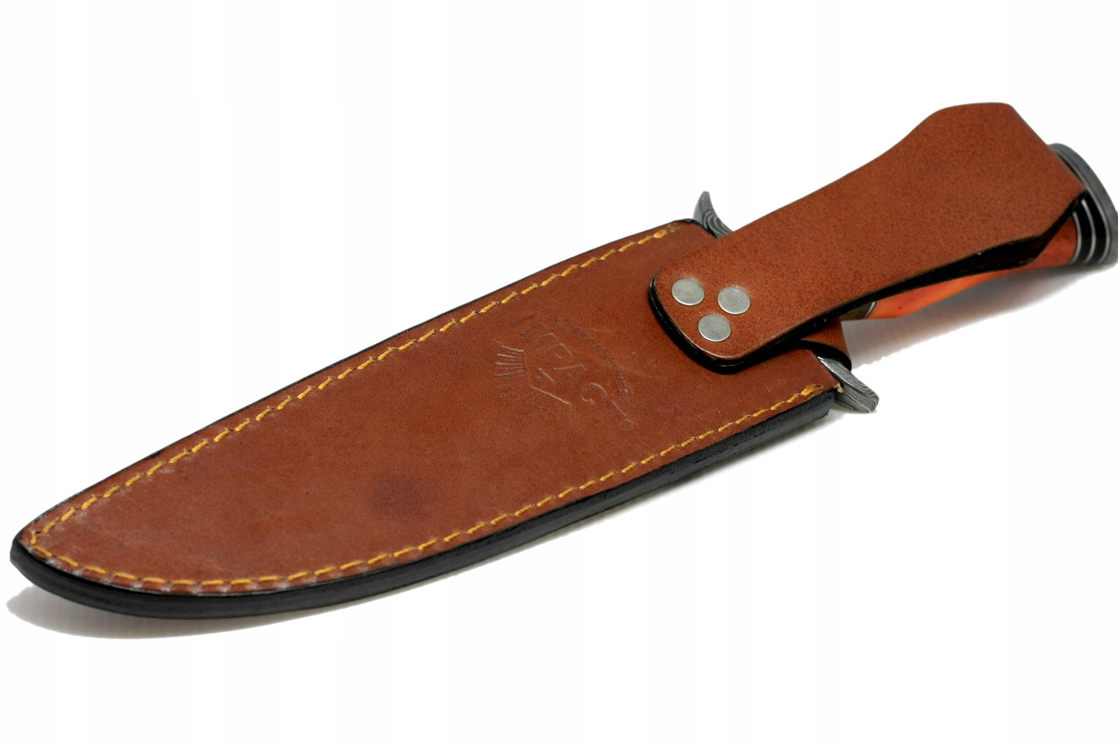 !! UWAGA: Skórzane pochwy wyciągają wilgoć z powietrza i mają tendencję do rdzewienia noży jeśli nie są prawidłowo przechowywane. Kiedy skończysz używać nóż, wyczyść go dokładnie i odłóż OD skórzanej pochwy, nałóż na niego olej do pistoletu, "Seal 1" lub podobny środek ochronny i przechowuj. Damascus, 1095HC i D2 mogą rdzewieć i rozwijać plamy jeśli nie są smarowane. Stal 1095HC może matowieć i zmieniać kolor ostrza na czarny, gdy krew i kwaśne płyny lub chemikalia dostaną się na ostrze. Ostrze nie straci swoich właściwości tnących, ale straci satynowy kolor. !!!
