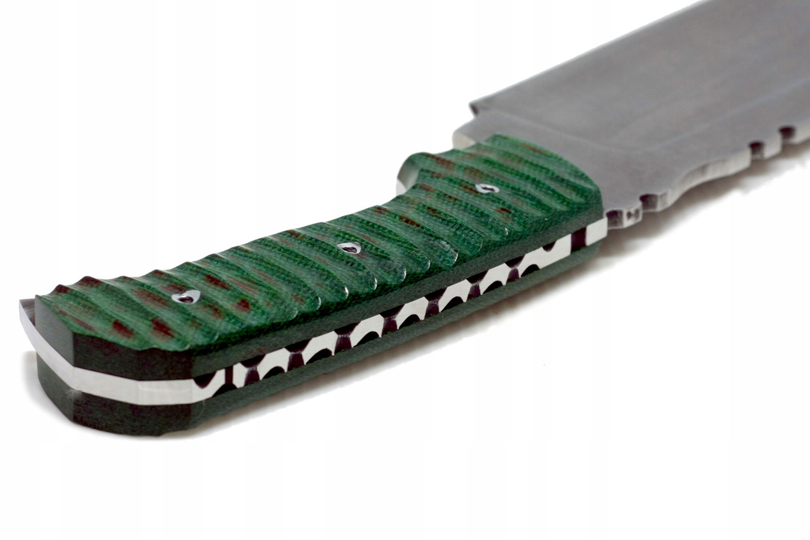 - Rękojeść (materiał): Micarta (Laminat z warstw płótna lub papieru zatopionego w żywicy epoksydowej i prasowanego pod ciśnieniem. Odporny na działanie wody i większości popularnych czynników chemicznych. Wytrzymałość tylko trochę mniejsza od G-10. W zależności od doboru płótna lub papieru można osiągać ciekawe efekty kolorystyczne i różnorodne faktury. Micartę obrabia się metodą skrawania, można jej także nadawać antypoślizgową fakturę jeszcze na etapie prasowania. Stosowana głównie w nożach średniej i wyższej klasy.)