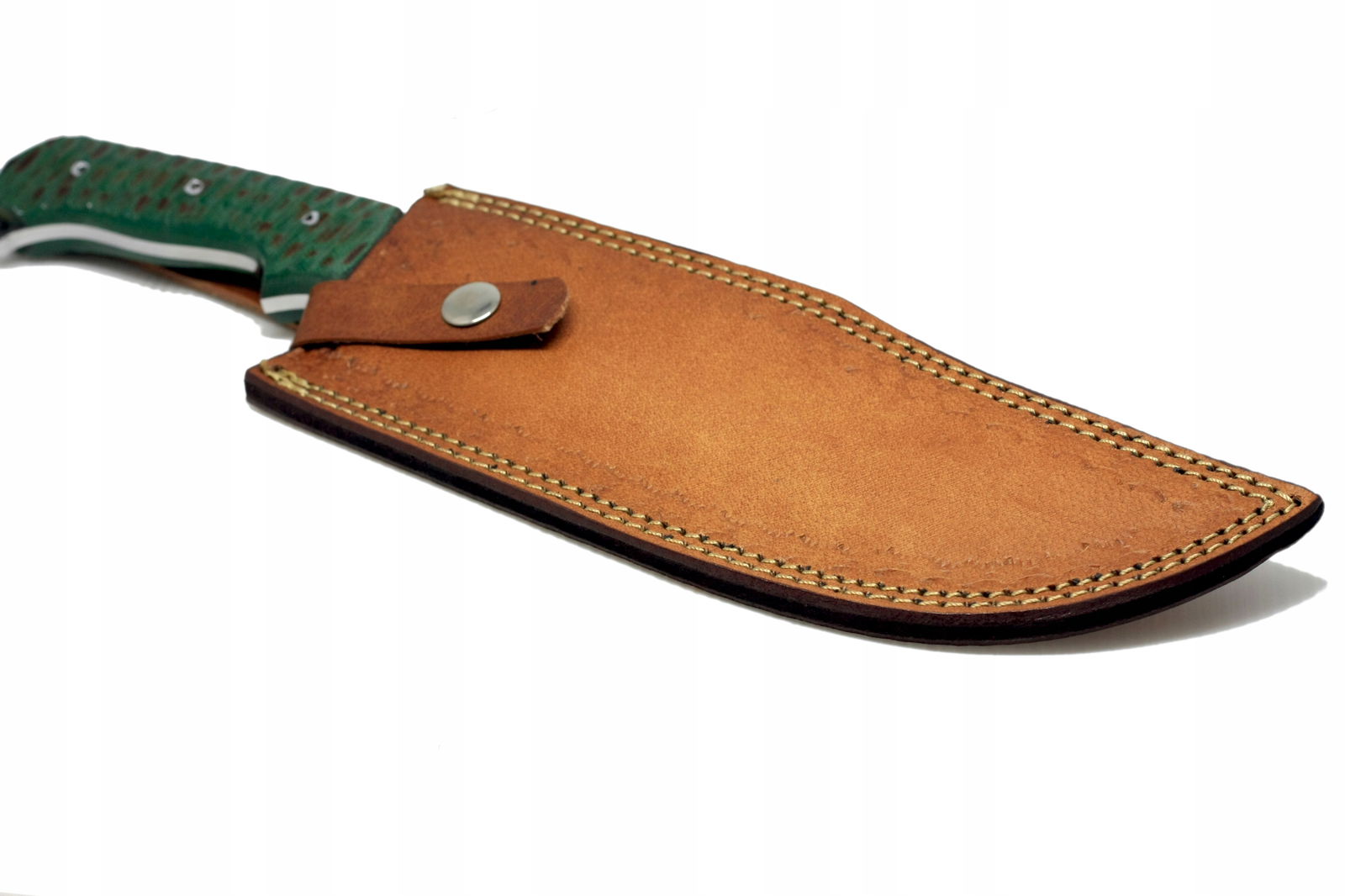 !!! UWAGA: Skórzane pochwy wyciągają wilgoć z powietrza i mają tendencję do rdzewienia noży jeśli nie są prawidłowo przechowywane. Kiedy skończysz używać nóż, wyczyść go dokładnie i odłóż OD skórzanej pochwy, nałóż na niego olej do pistoletu, "Seal 1" lub podobny środek ochronny i przechowuj. Damascus, 1095HC i D2 mogą rdzewieć i rozwijać plamy jeśli nie są smarowane. Stal 1095HC może matowieć i zmieniać kolor ostrza na czarny, gdy krew i kwaśne płyny lub chemikalia dostaną się na ostrze. Ostrze nie straci swoich właściwości tnących, ale straci satynowy kolor. !!!