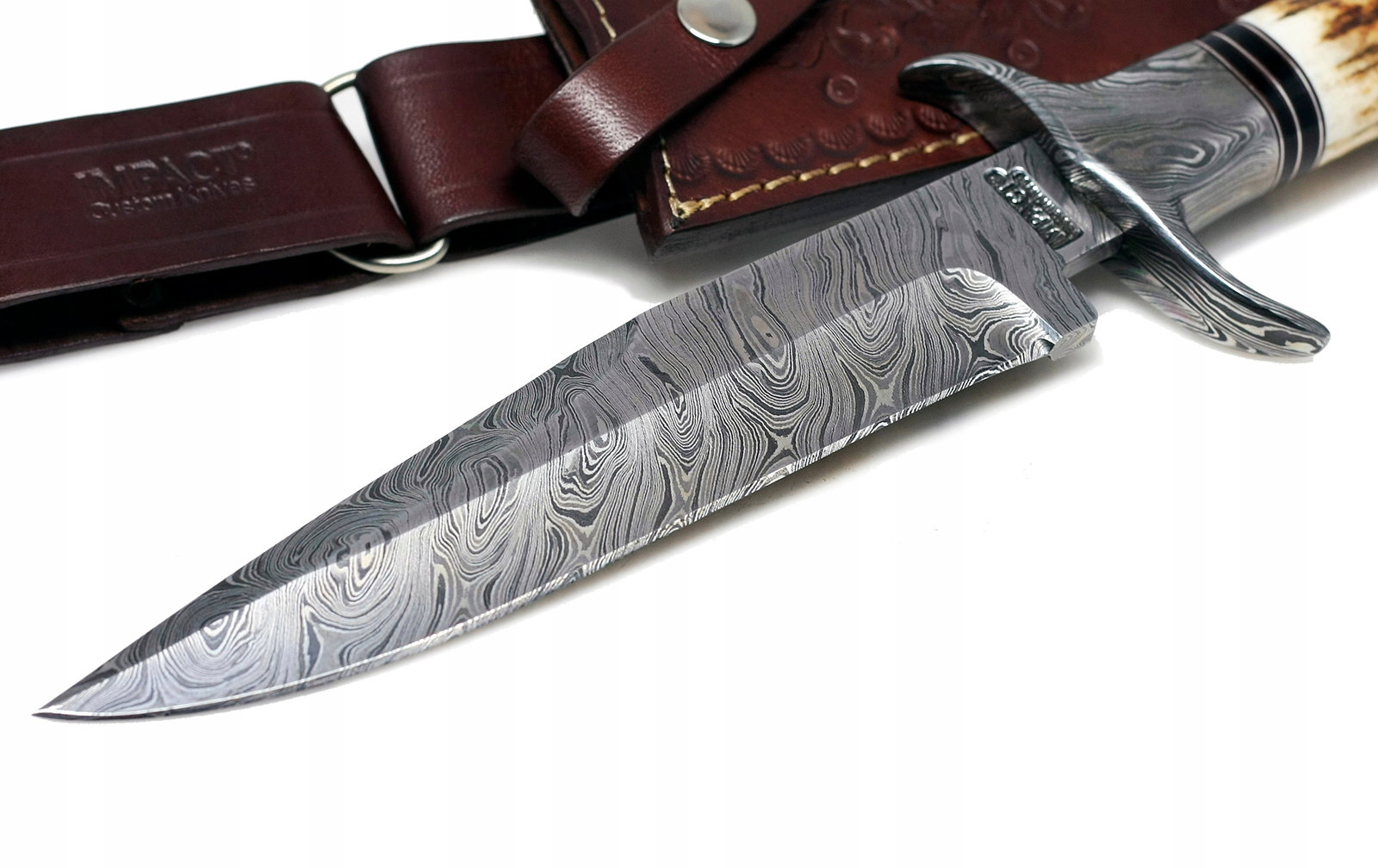 Nóż myśliwski ręcznie wykonany BOWIE stal DAMASCEŃSKA Damast ETUI HM-433 Impact