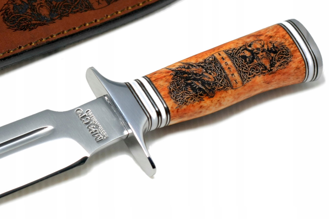 Ten wyjątkowy ręcznie wykonany nóż myśliwski ze ze stali D2 nie tylko wygląda oszałamiająco, ale jest również niezwykle wytrzymały. Głownia wsuwa się do rękojeści bez żadnego mechanicznego połączenia ani spawu. Ten niesamowity nóż posłuży przez wiele lat.